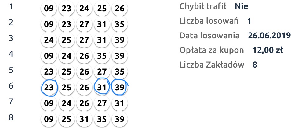 Kasia jak zwykle wymiata 8-)KasiaM pisze: ↑27 cze 2019, 14:02Do niedawna grałam codziennie: 2 x 8 zakładów + 2 x 12 zakładów