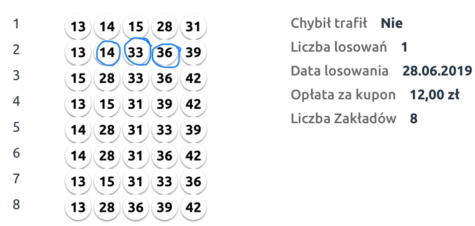 Do niedawna grałam codziennie: 2 x 8 zakładów + 2 x 12 zakładów
