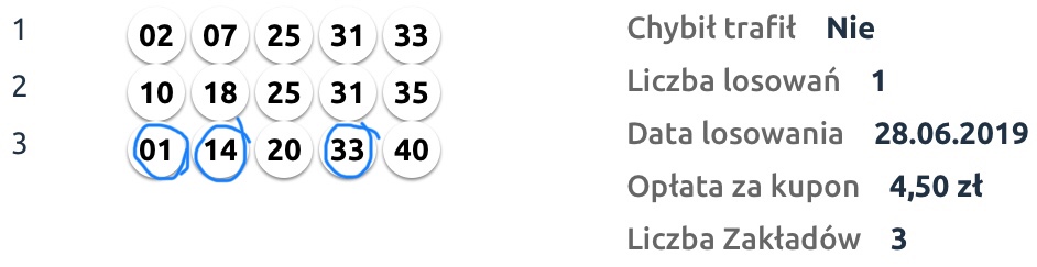 Natu_gracz pisze: ↑28 cze 2019, 17:32Kasia jak zwykle wymiata 8-)KasiaM pisze: ↑27 cze 2019, 14:02Do niedawna grałam codziennie: 2 x 8 zakładów + 2 x 12 zakładów