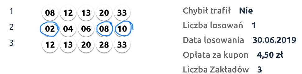 Od jakiegoś czasu (2 miesiące) gram codziennie: 2 x 8 zakładów + 3 x 12 zakładów + średnio raz w tygodniu do 8 zakładów