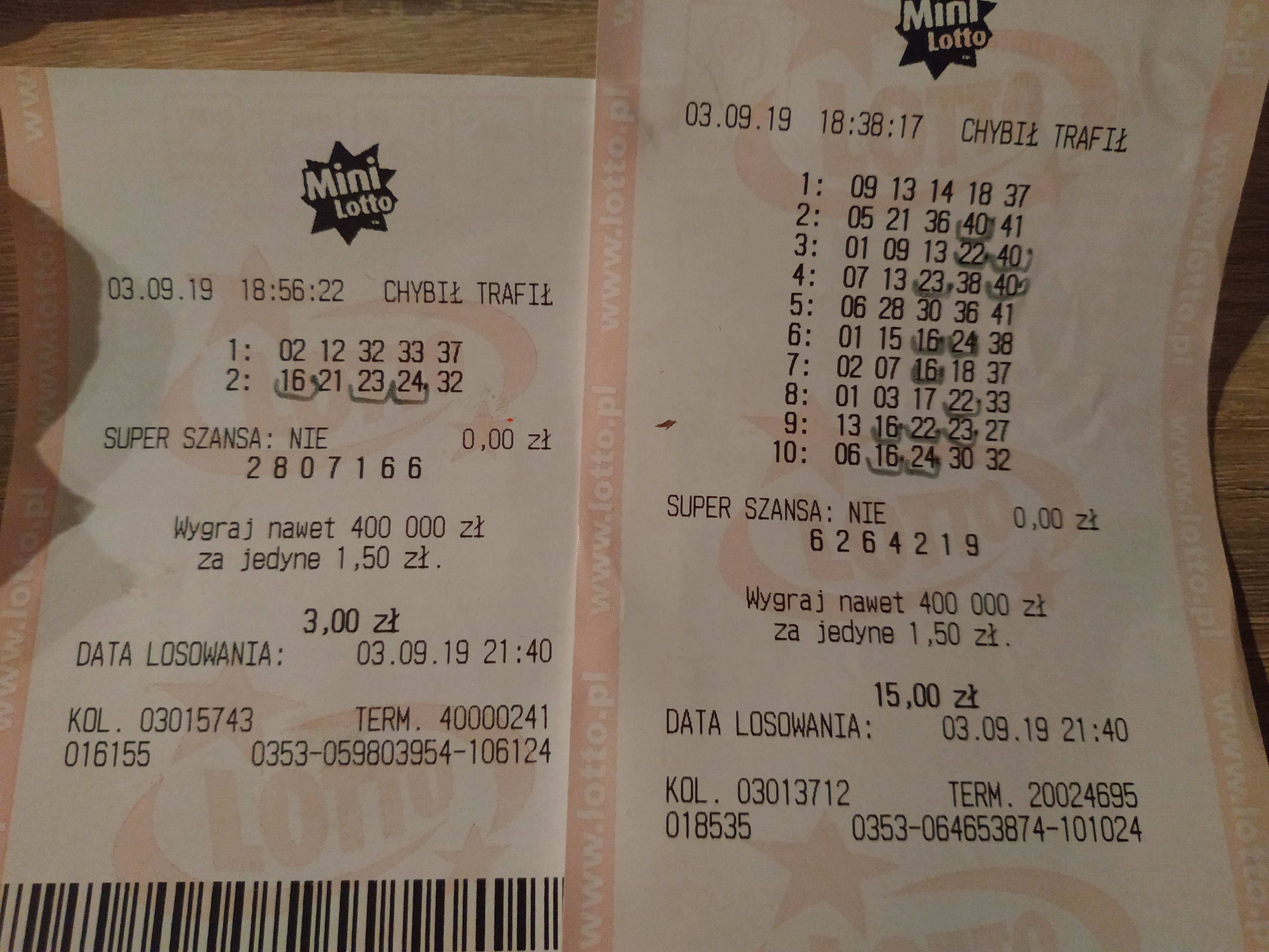 ER33 tak się fajnie ułożyło , że 1 liczba się u Was powtarza ( jak pamiętam to 16) , a 2 pozostałe macie różne. Więc tak śmiesznie się ułożyły liczby ,że w tych Waszych trójkach ułożyła się wygraną pierwszego stopniaER33 pisze: ↑31 sie 2019, 22:30Dziękimzielakzielakm pisze: ↑31 sie 2019, 0:07Graty ER33 i Sudety za ładnie płatne trójki. Jedno co mogę Wam ZASUGEROWAĆ !!!! Następnym razem wymieńcie się luczbami![]()