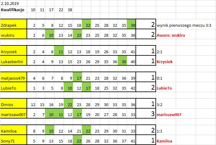 Ja w tej rundzie zostaje z numerami które podałam wcześniej