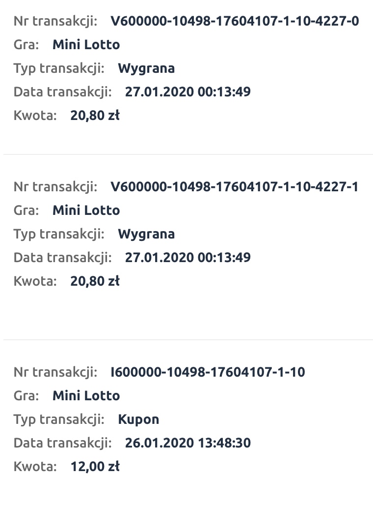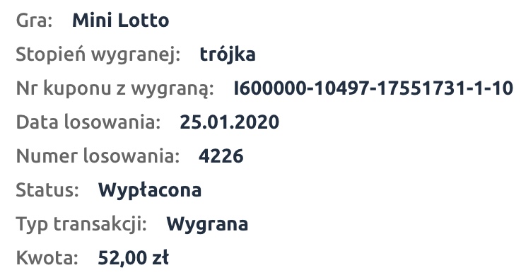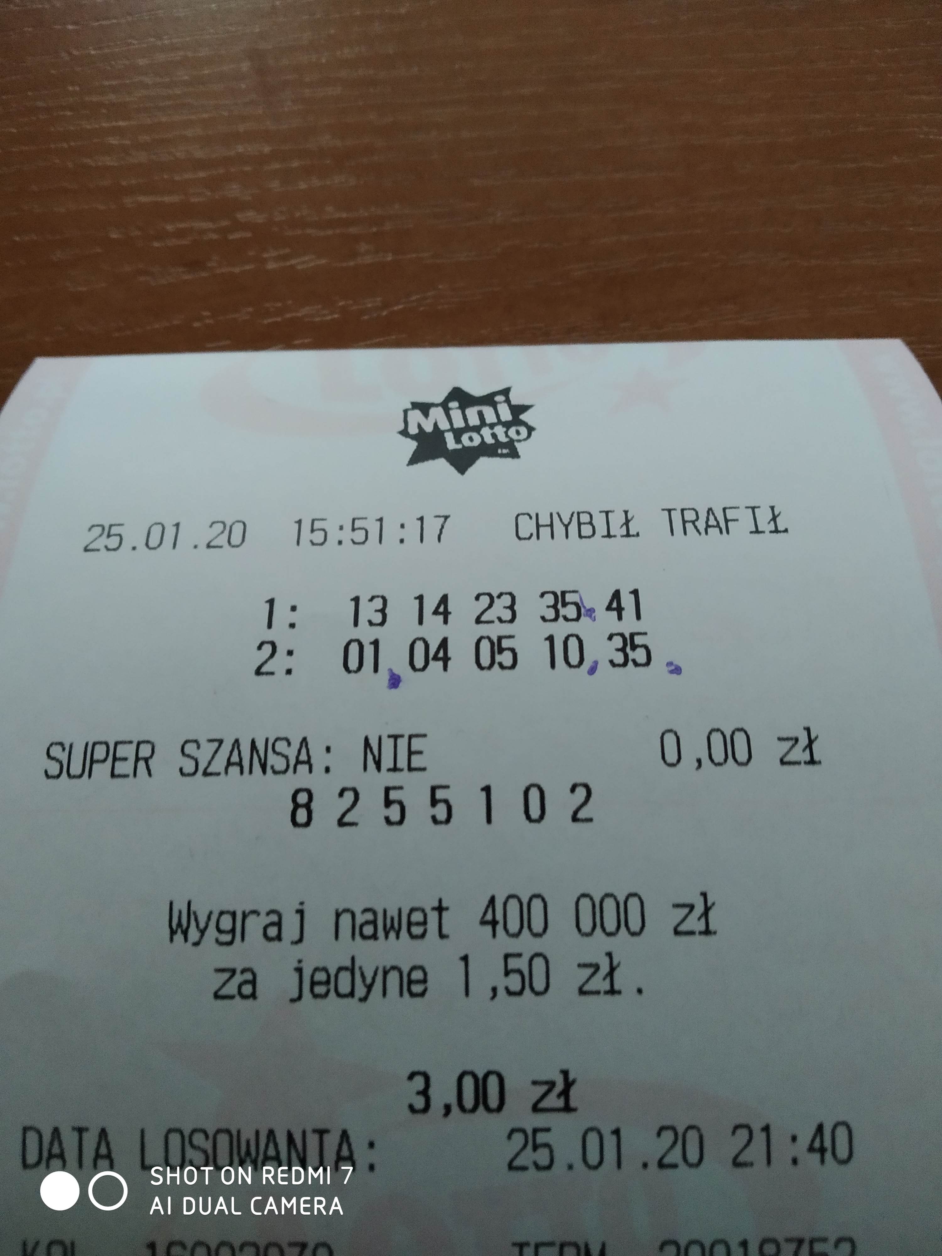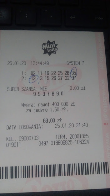 dla porównania, spudłowany kupon z moimi liczbami, z ostatnich dni.