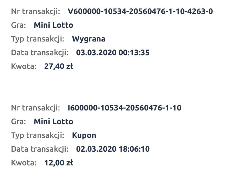 gdziemojepiwo pisze: ↑23 lut 2020, 10:58W końcu po wielu miesiącach udało mi się trafić trójkę. Oczywiście kiedy nie trafię to zawsze musi być słabo płatna. Ja nie wiem, cena kuponu w górę a tak słabo płatnej trójki to ja w życiu nie miałem. No nic, trzeba czekać kolejne pół roku na kolejną trójkę.