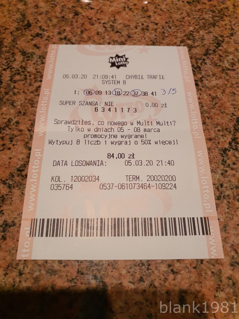 W końcu po wielu miesiącach udało mi się trafić trójkę. Oczywiście kiedy nie trafię to zawsze musi być słabo płatna. Ja nie wiem, cena kuponu w górę a tak słabo płatnej trójki to ja w życiu nie miałem