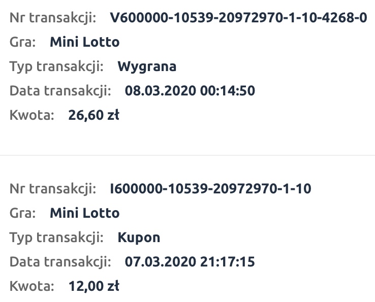 Ja miałam podobnie Przy ostatniej czwóreczkę (2 marca), piątą wylosowaną liczbą było 40 a ja miałam 41