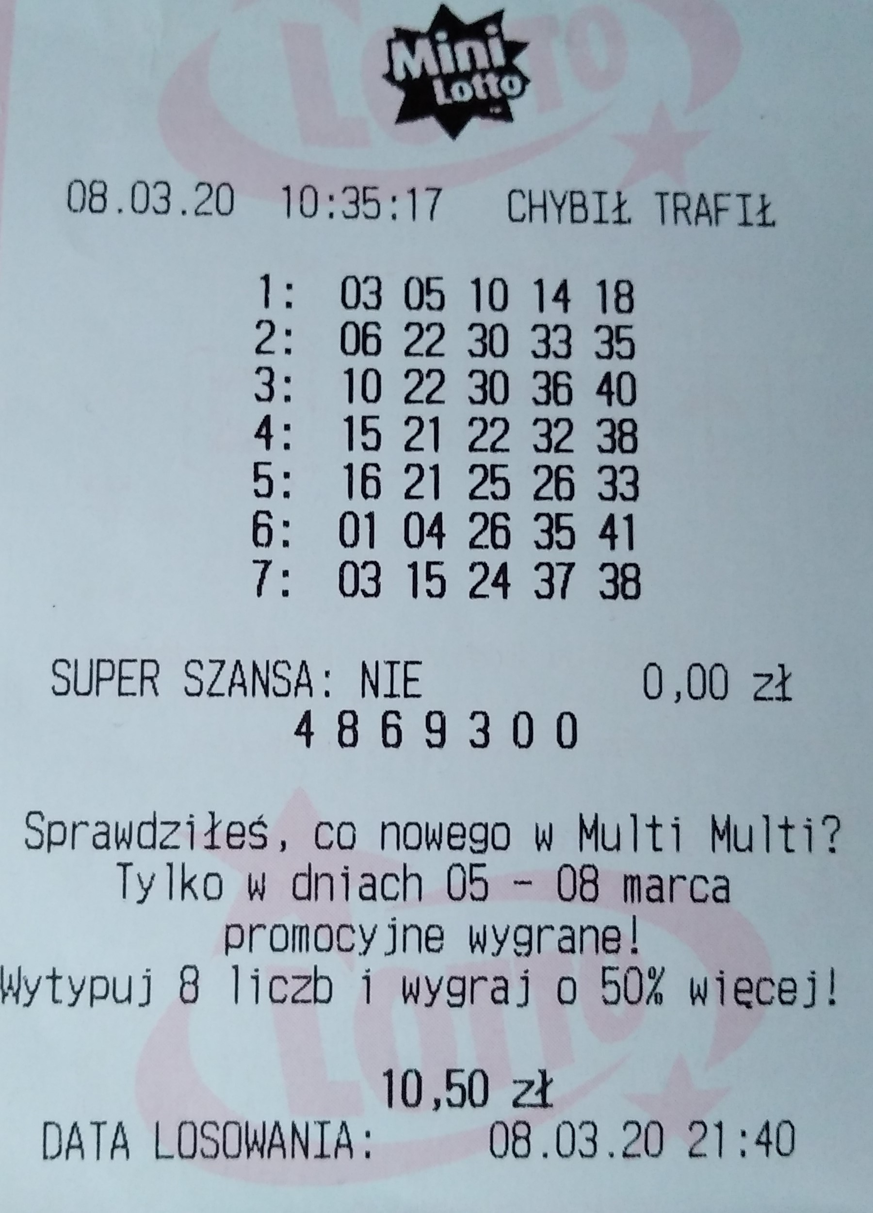 Wczoraj wpadła trójka w mini super płatna 50,7 zł, ostatnio trójkę miałem w styczniu a gram codziennie. Naprawdę trzeba mieć cierpliwość do tej gry.