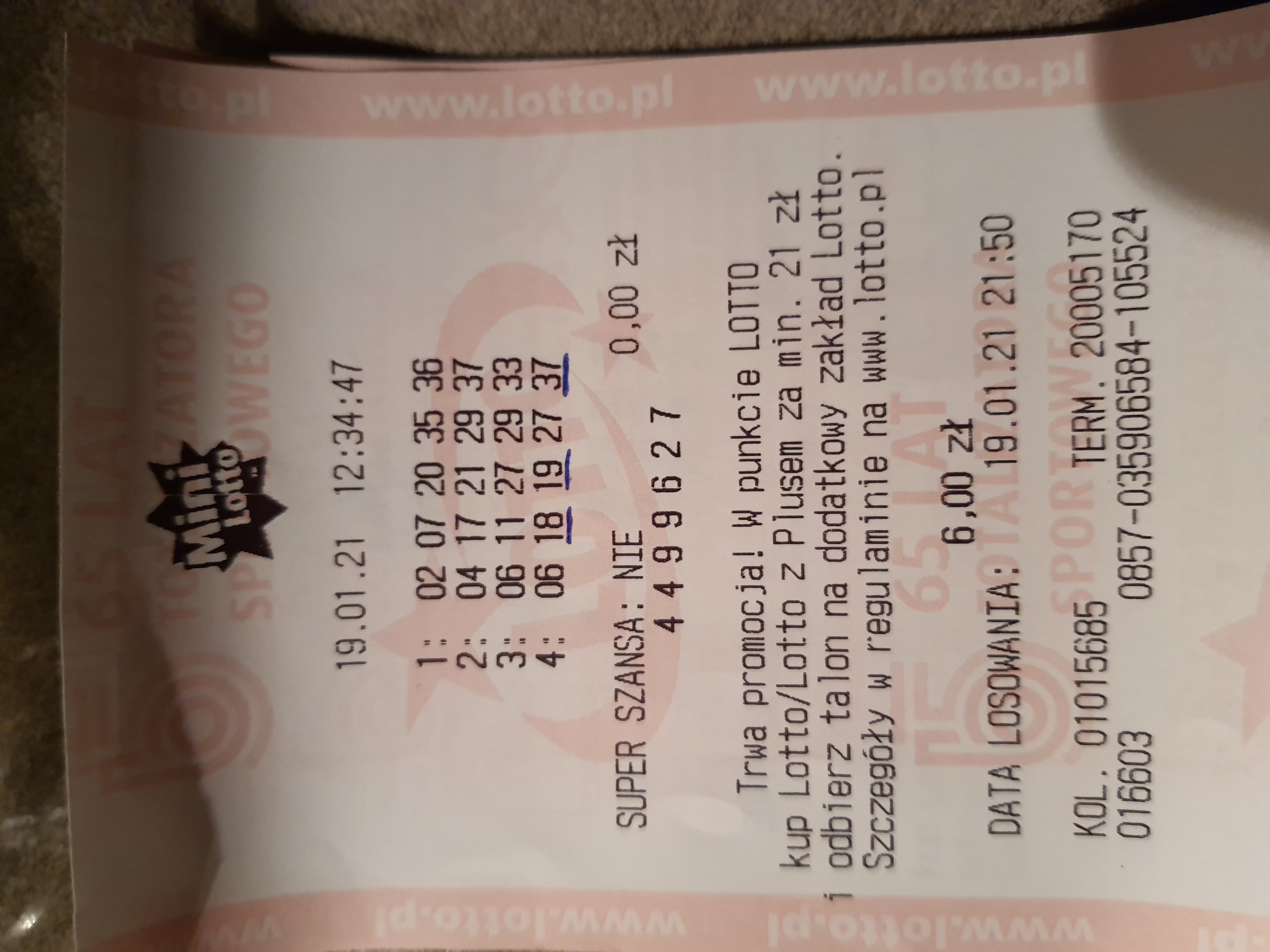 Już myślałem, że w styczniu nic w Mini nie trafię ale udało się. Siadła "trójka": 10, 13, 26, 31, 41