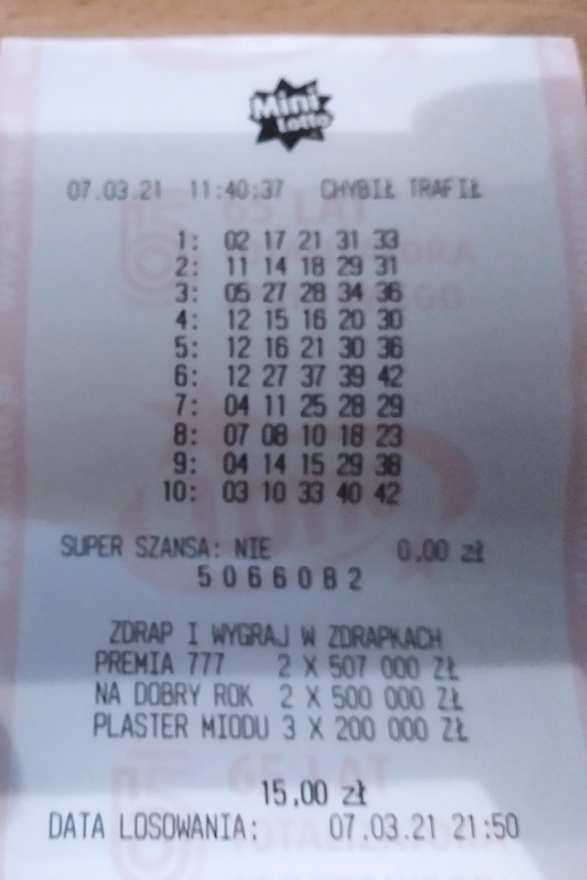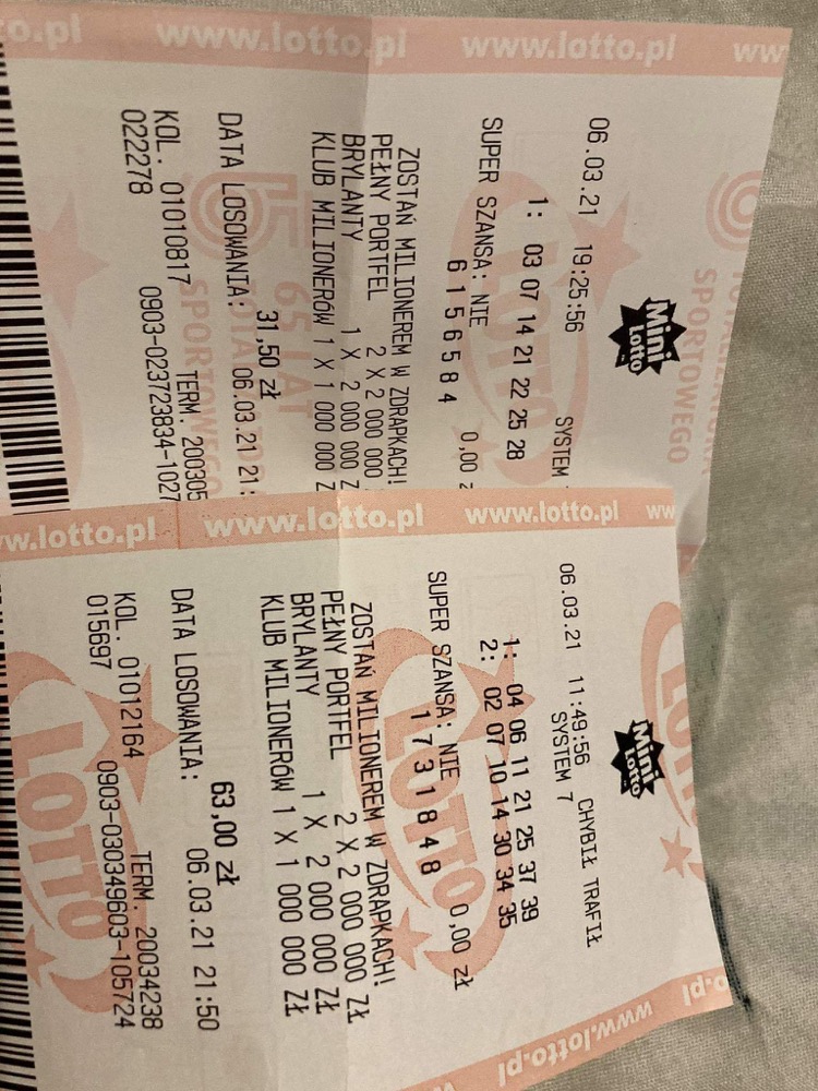 Dziwne ponad milion zakładów i nie ma piątki, dla mnie ta gra już działa mocno na nerwy. 4 miesiące gry 4-6 zakładów dziennie i zlamanej trójki nawet nie ma.