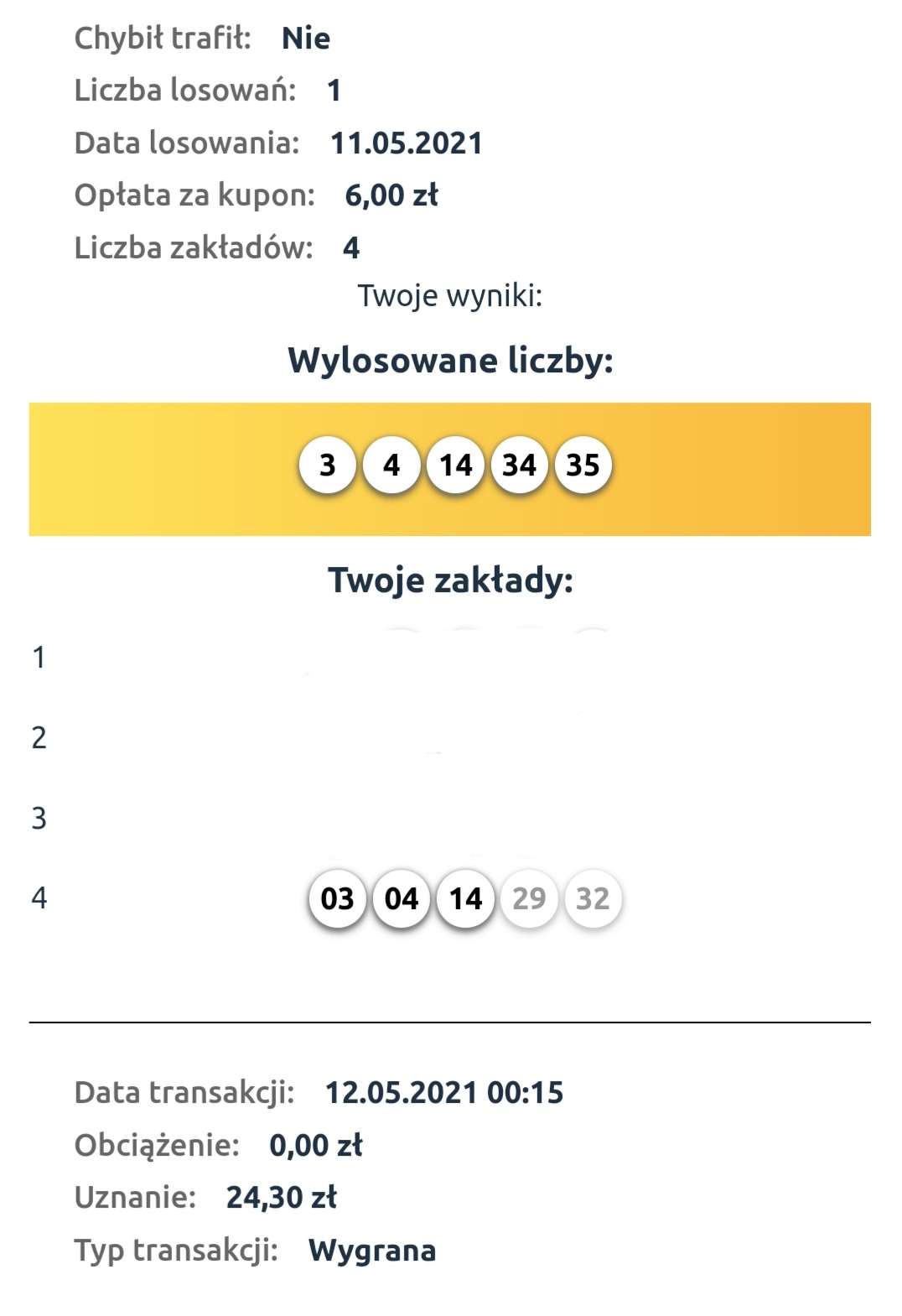 Wpadła czwórka słabiutko płatna 415 zł, trzeba było czekać 1,5 roku.