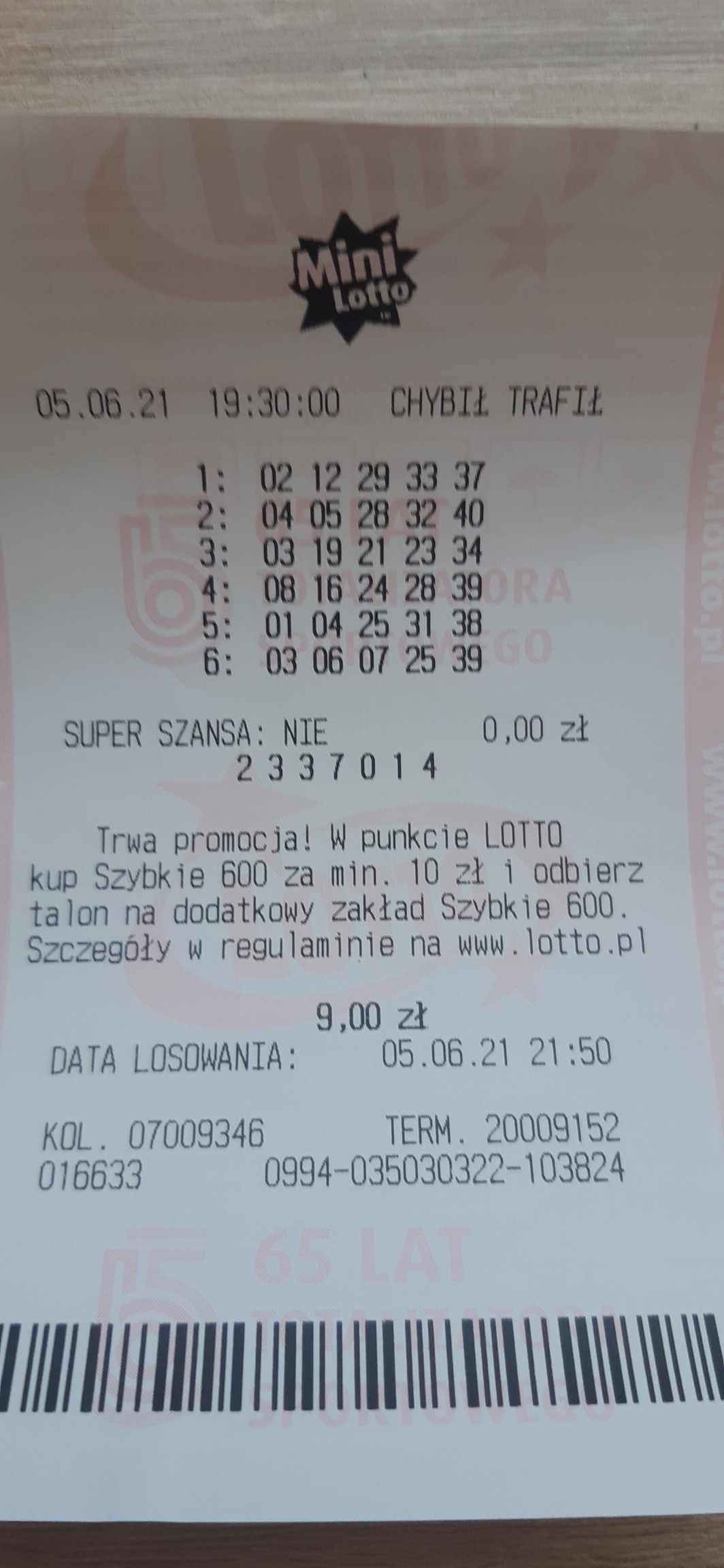 I jak? Lotto wypluło urodzinowy prezent? Wszystkiego Najlepszego a co do lotto to otrzyj łzyKrZySiEk8964 pisze: ↑04 cze 2021, 15:37W normalne dni, Mini Lotto może ze mną lecieć w kulki
