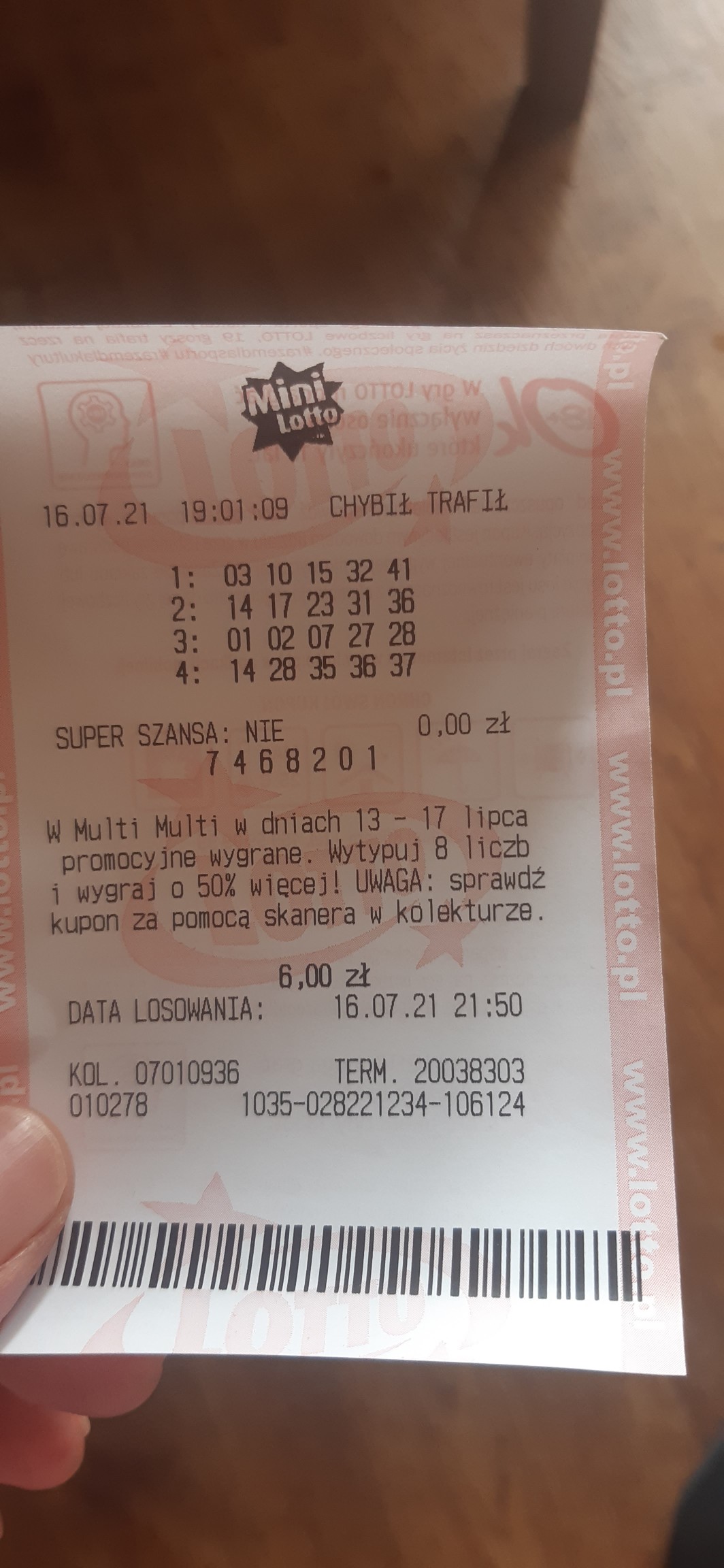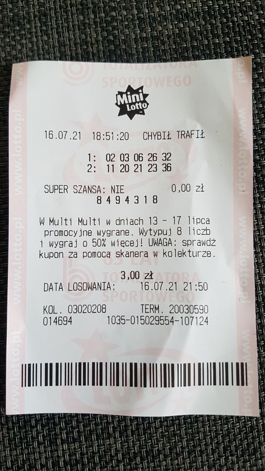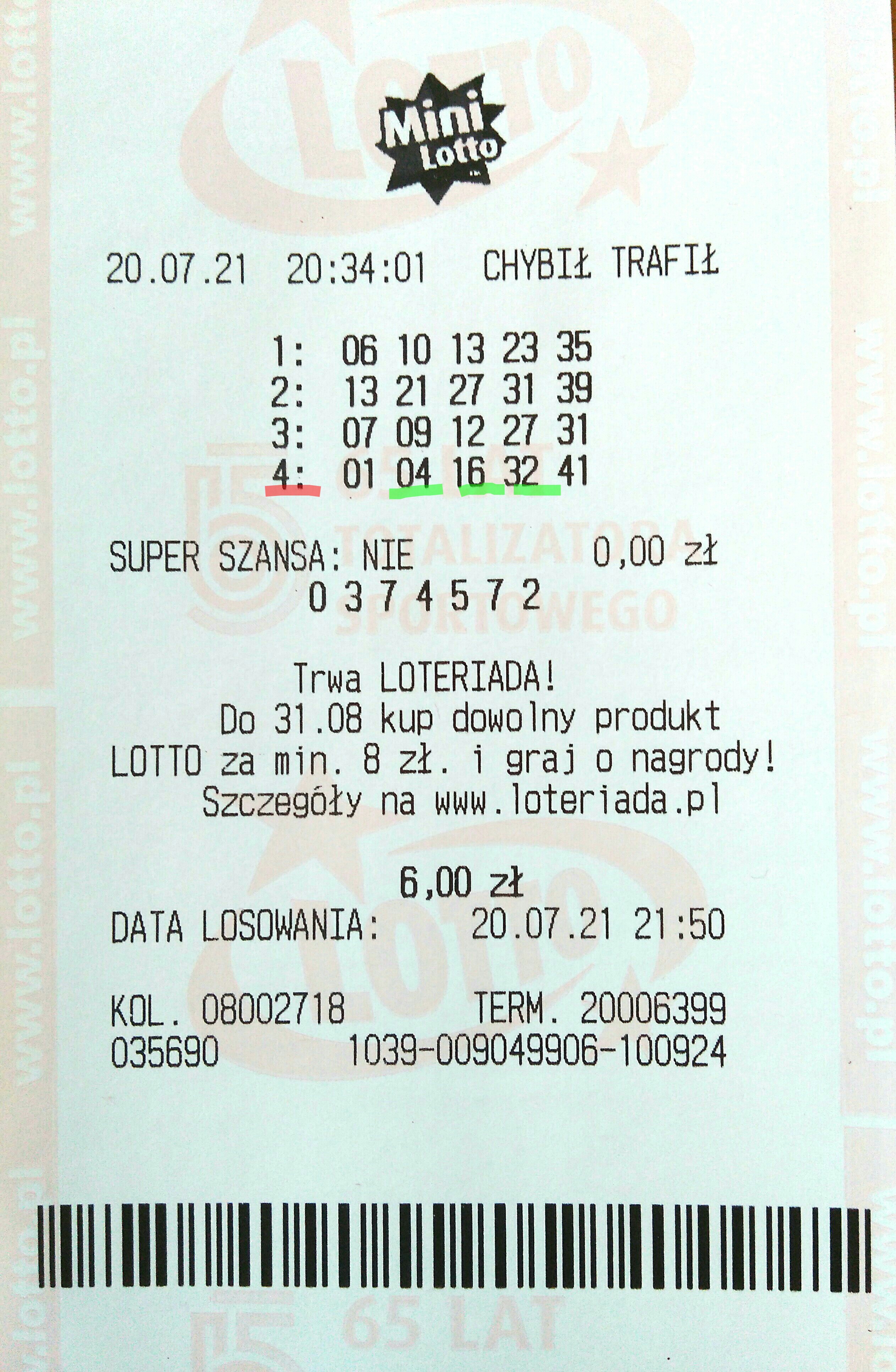 W pierwszym zakładzie trafione 2,3,32.