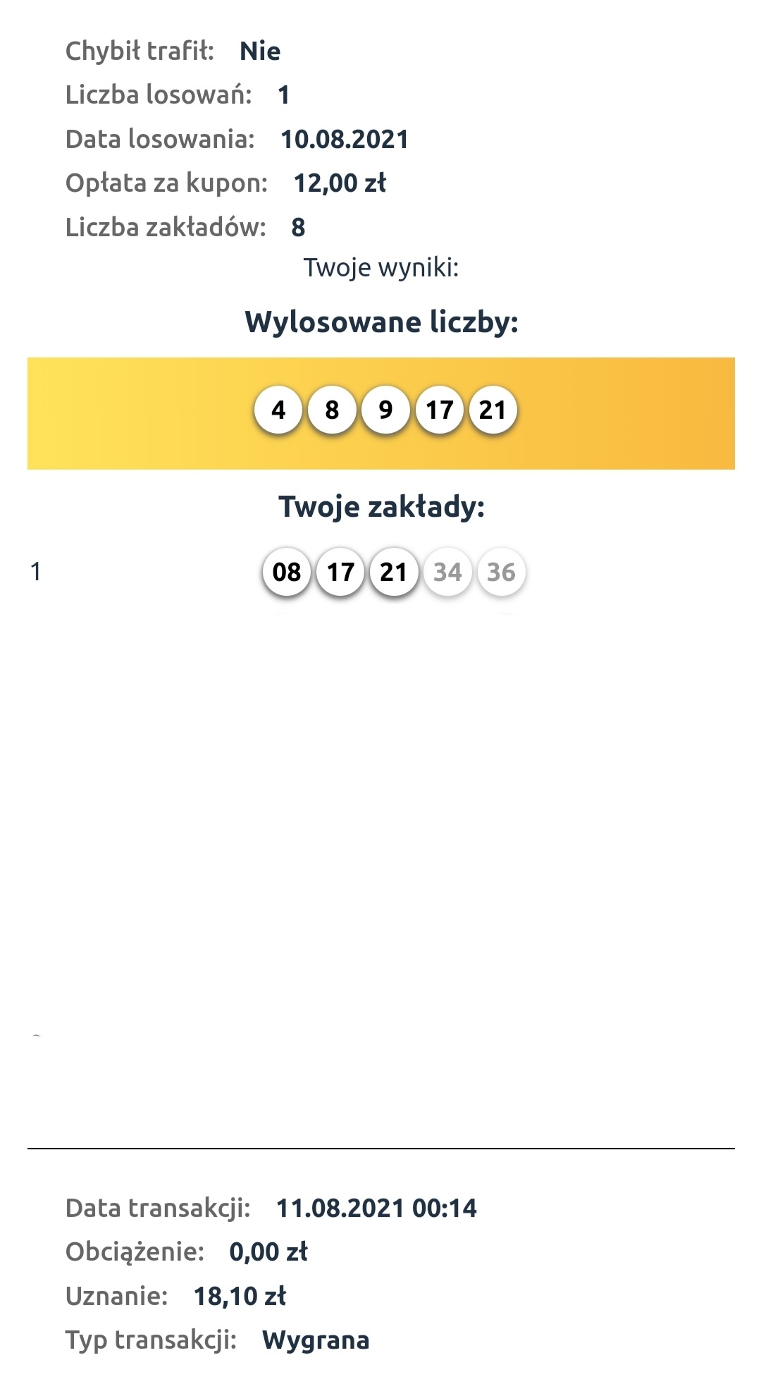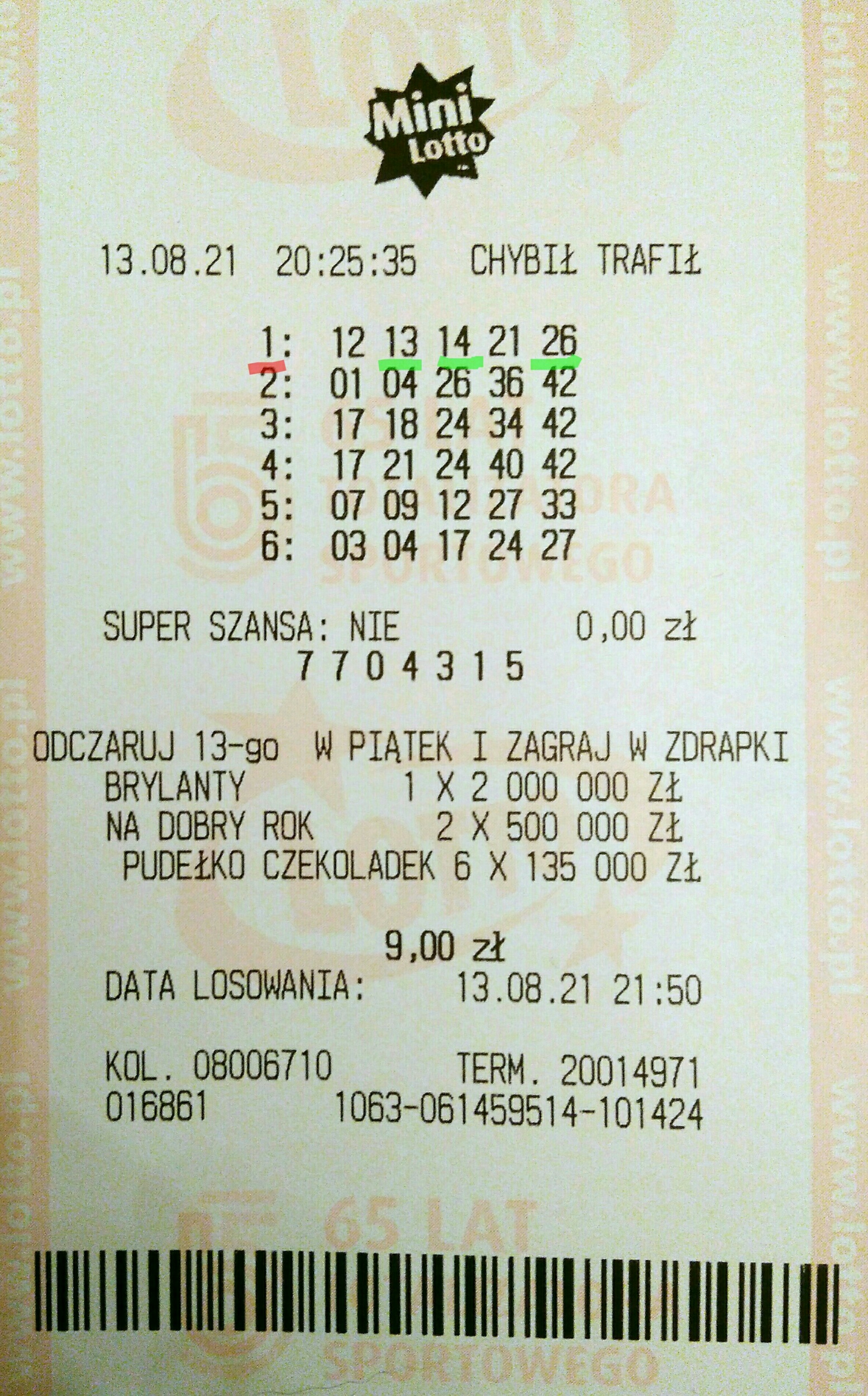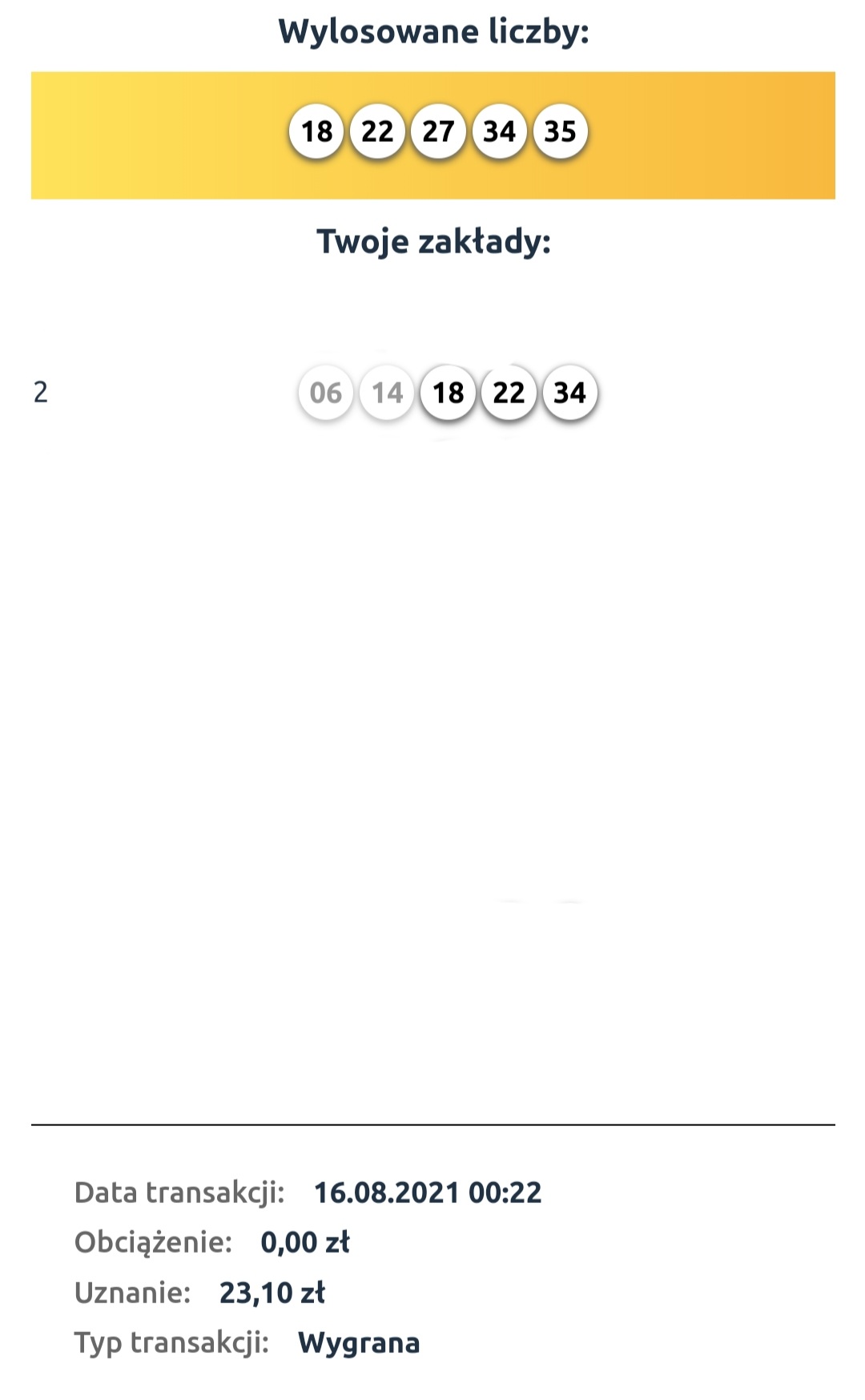 Szansa na dowolną wygraną w Mini Lotto wynosi 1 do 124 więc można powiedzieć, że Twój przypadek jest książkowy. Ta gra jest bardzo zwodnicza. Można nieźle popłynąćKrZySiEk8964 pisze: ↑15 sie 2021, 23:4915 zakładów na 10 losowań - 23,10zł wygrane. Dziękuję, nie mam pytań.