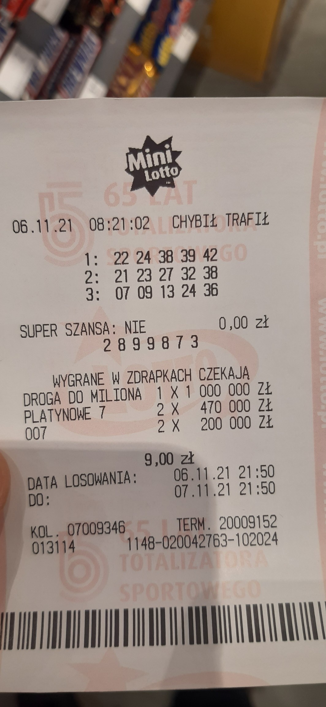 Dzisiaj miałem szczęście w zdrapkach więc ciekawe czy przełoży się tez to na mini lotka. Na wieczór 6 zakładów CT ;)