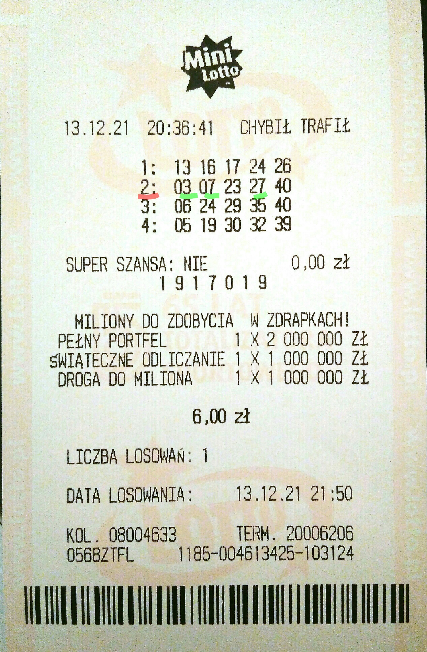 Tych 2/5 plus oboki nie unikniesz bo jato tak liczę że 5 liczę plus oboki to 15 na 42 a tu matematyka mówi że będziemy się denerwowaćroberthajto pisze: ↑12 gru 2021, 11:57No właśnie chciałbym się rozpędzić bo cały czas trójki. Te wt to gorąca 19 z systemy lotto i coś odemnie . Plus jakieś tam własne typy