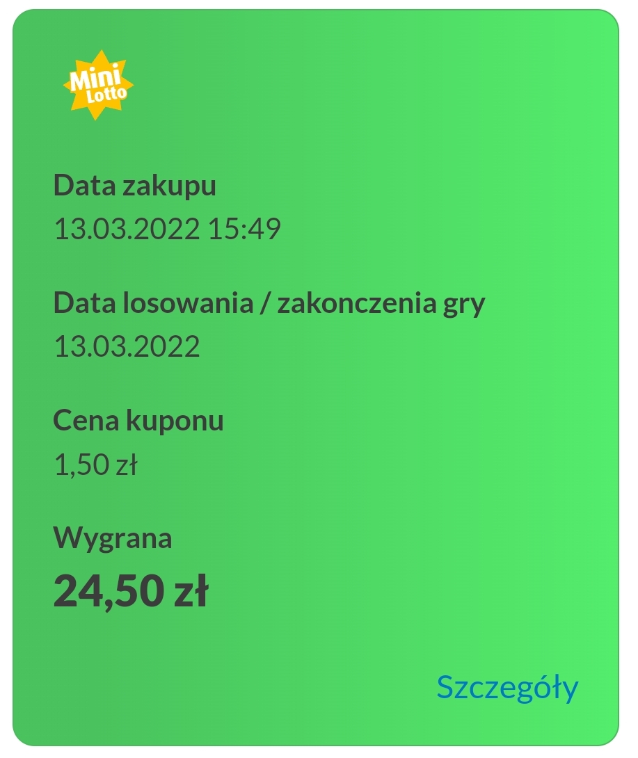 W sobotę wpadła trójka , ładnie płatna. O dziwo , trafiłem trójki dwa razy pod rząd. Teraz pewnie trochę przerwy będzie....