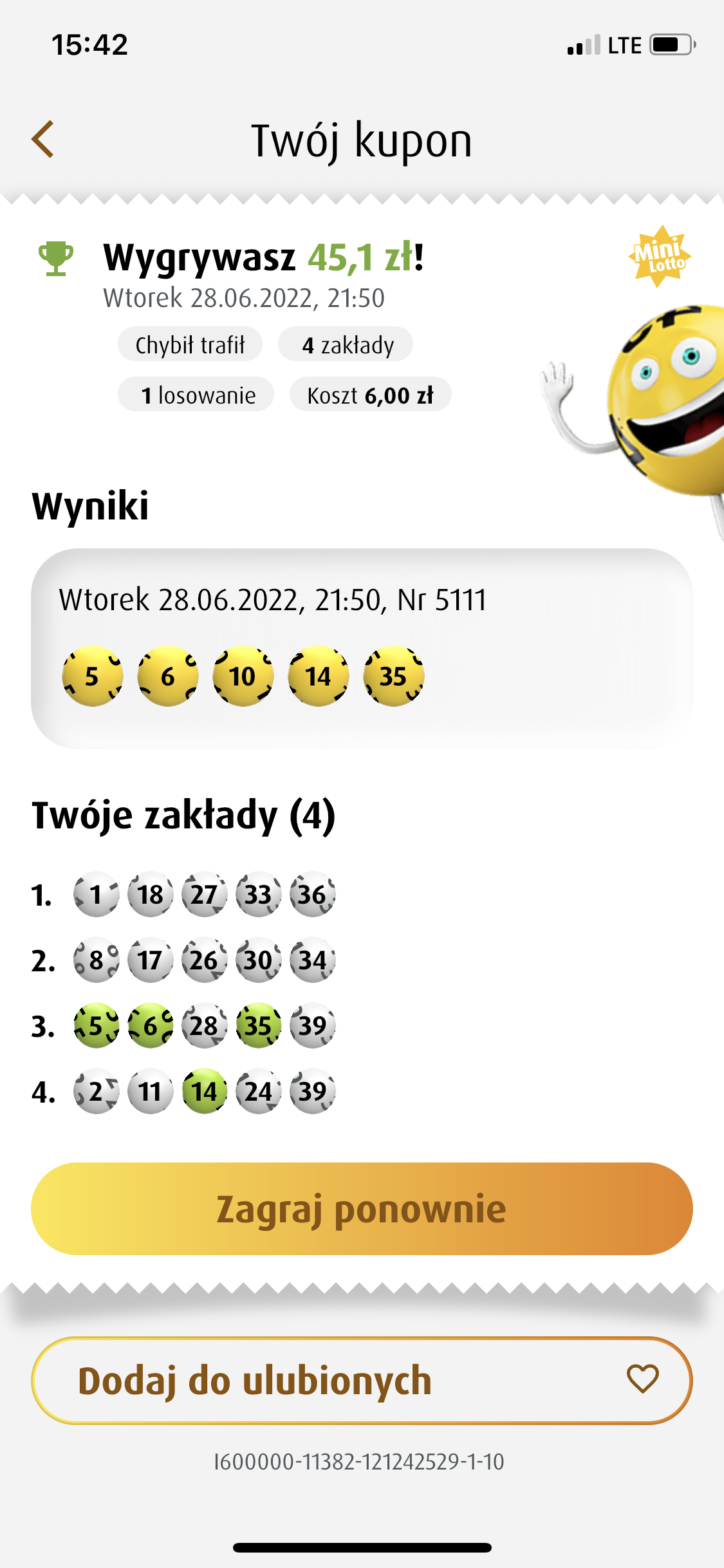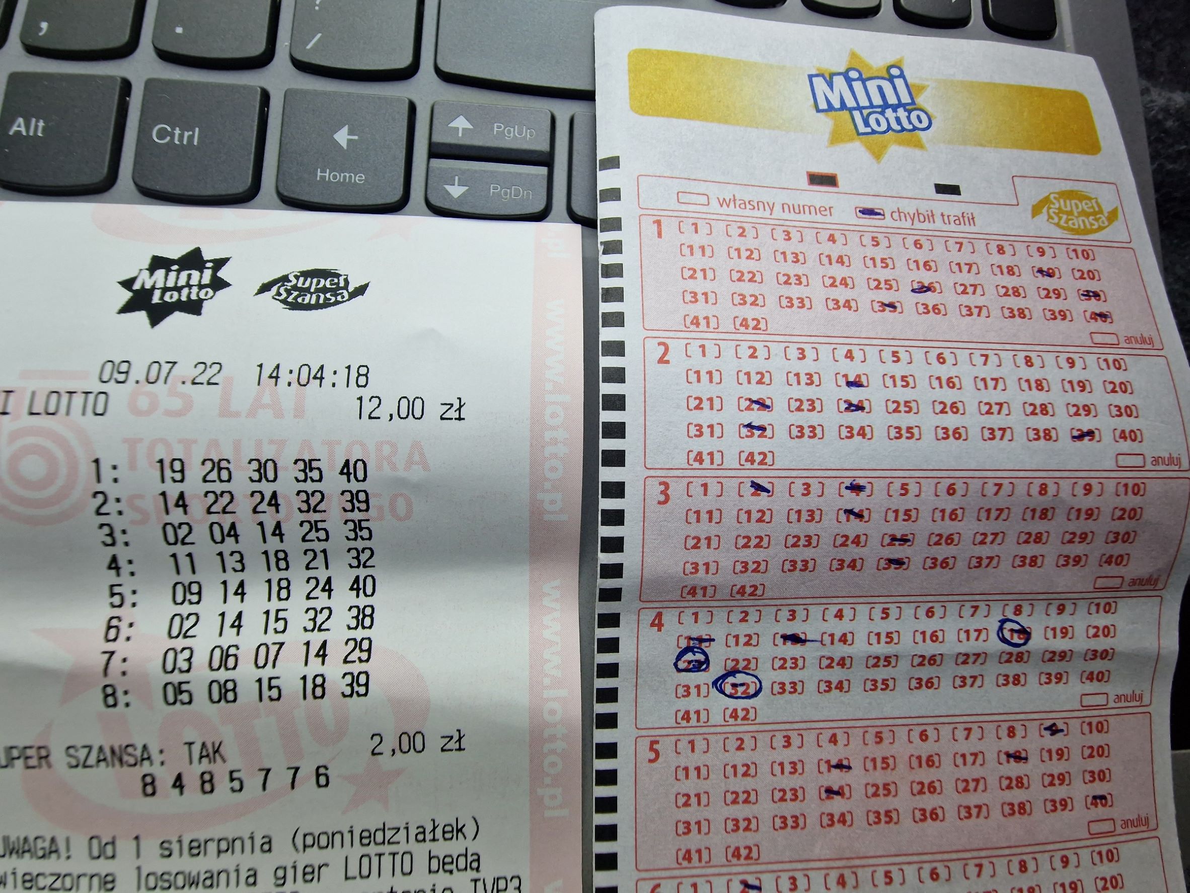 tier pisze: ↑01 lip 2022, 7:37 Dlatego w tym tygodniu nie gram, ostatnia wygrana 1.5 miesiąca temu (czwórka) i od tej pory nie trafiłem nawet trójki, tak to jest z tym mini...