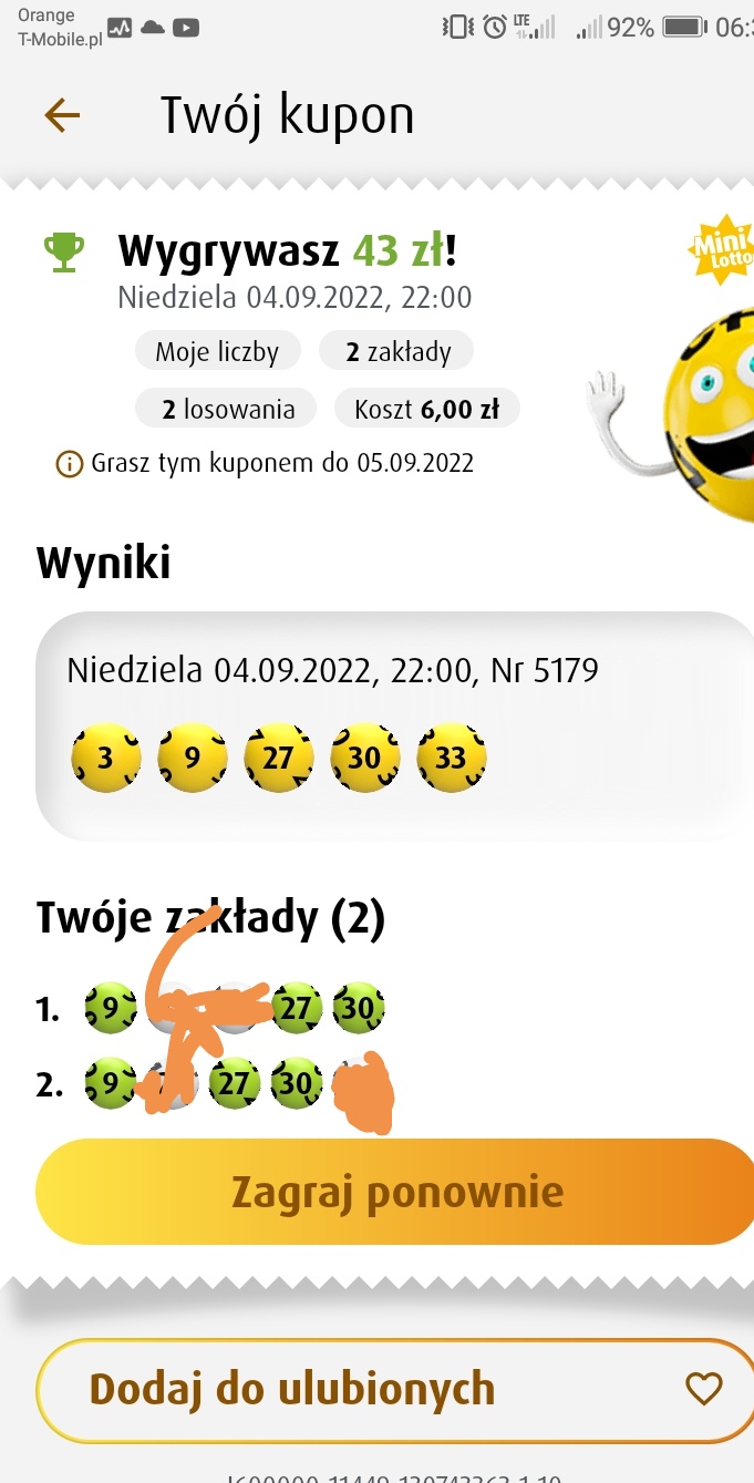 Słuchaj źle do tego podchodzisz. Za takie kwoty to graj na cały miesiąc. Tak naprawdę czy zagrasz 1 zakład na losowanie czy 60 nie ma większego znaczenia. Nadal szansa to około 1 do 800 tys. Tylko spokojna gra ma sens. Jeśli masz taką sumę na raz do wydania to lepiej dać wyższą stawkę w Multi Multi albo Ekstra Pensji.