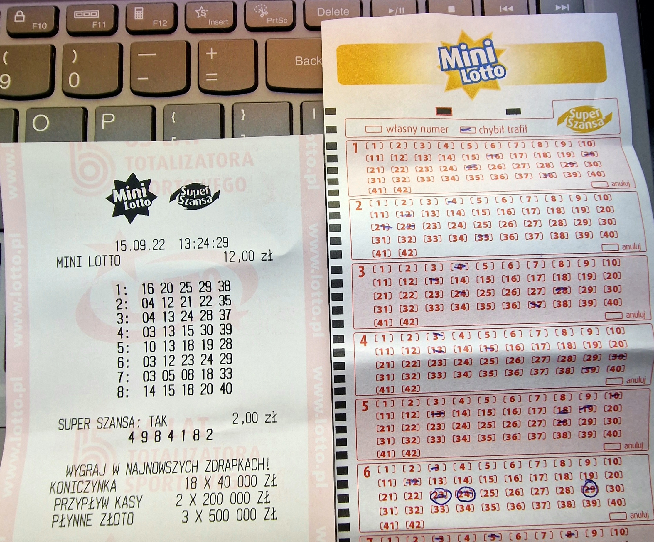 Pierwsza czwórka w Mini Lotto i jednocześnie najwyższa moja wygrana. Wysłane łącznie 16 zakładów, w ostatnim trafione 4/5 i do tego jeszcze 3/5 wpadło. Czwórka płatna 495,10 zł