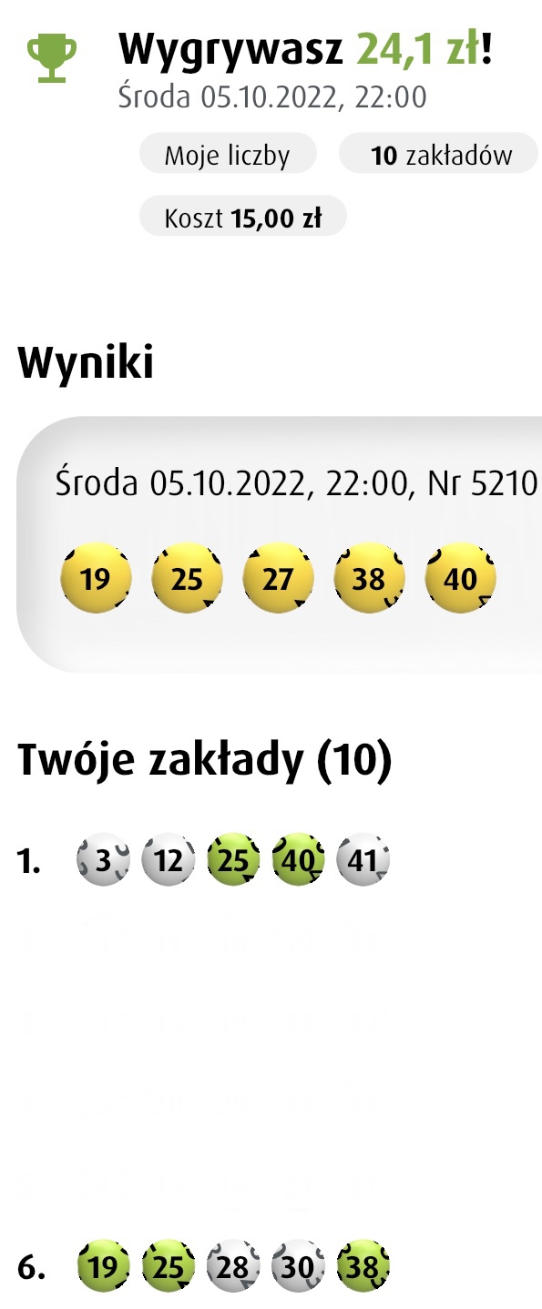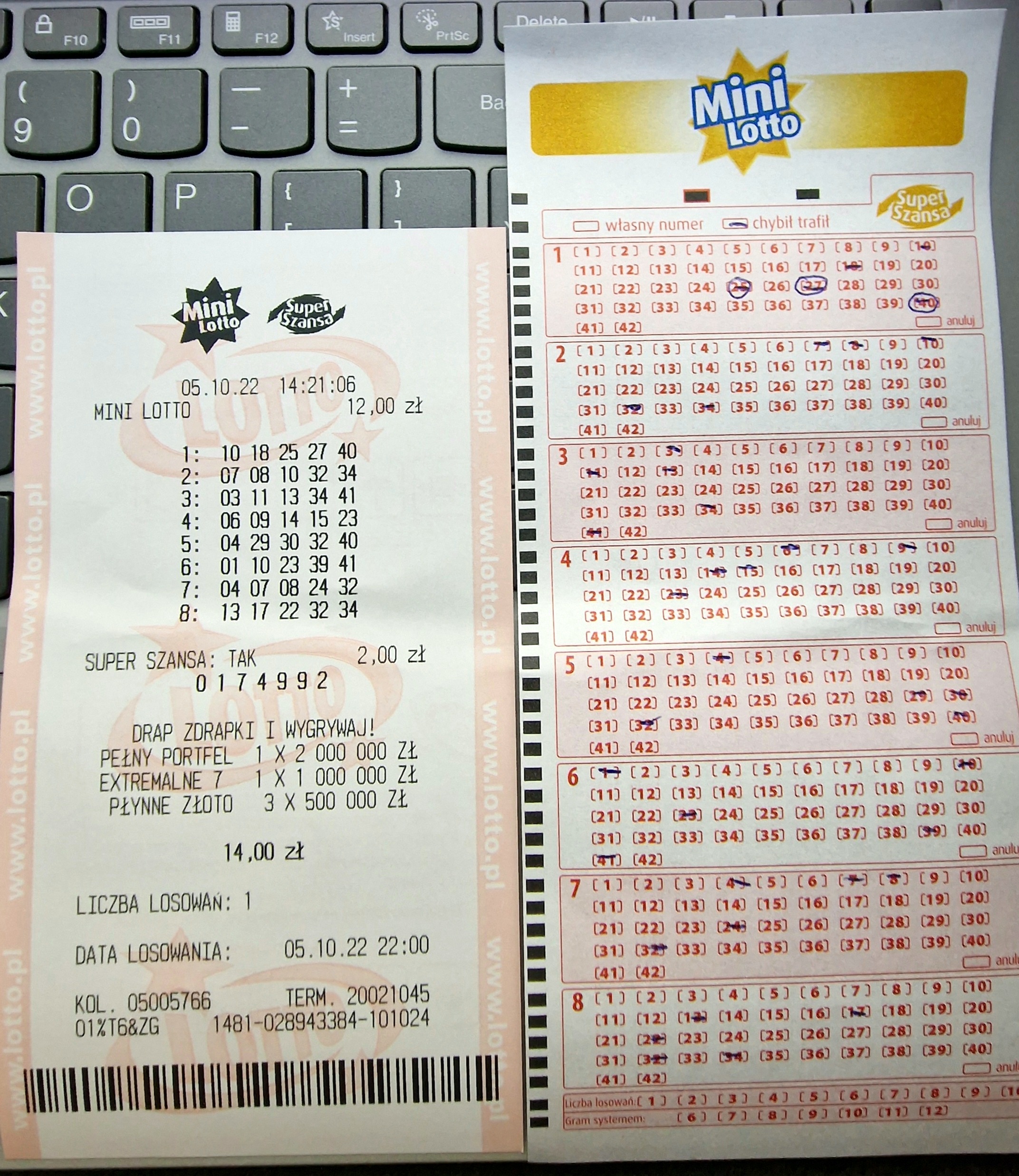 Ostanie losowanie, czyli te co było wczoraj i sprawdzamKrzysiek pisze: ↑04 paź 2022, 20:54Tzn jak ostatnia bo nie rozumiem.Daw pisze: ↑04 paź 2022, 11:48Witam, gram swoim sposobem że wybieram na chybił trafił a potem zmieniam liczby które mogą paść,