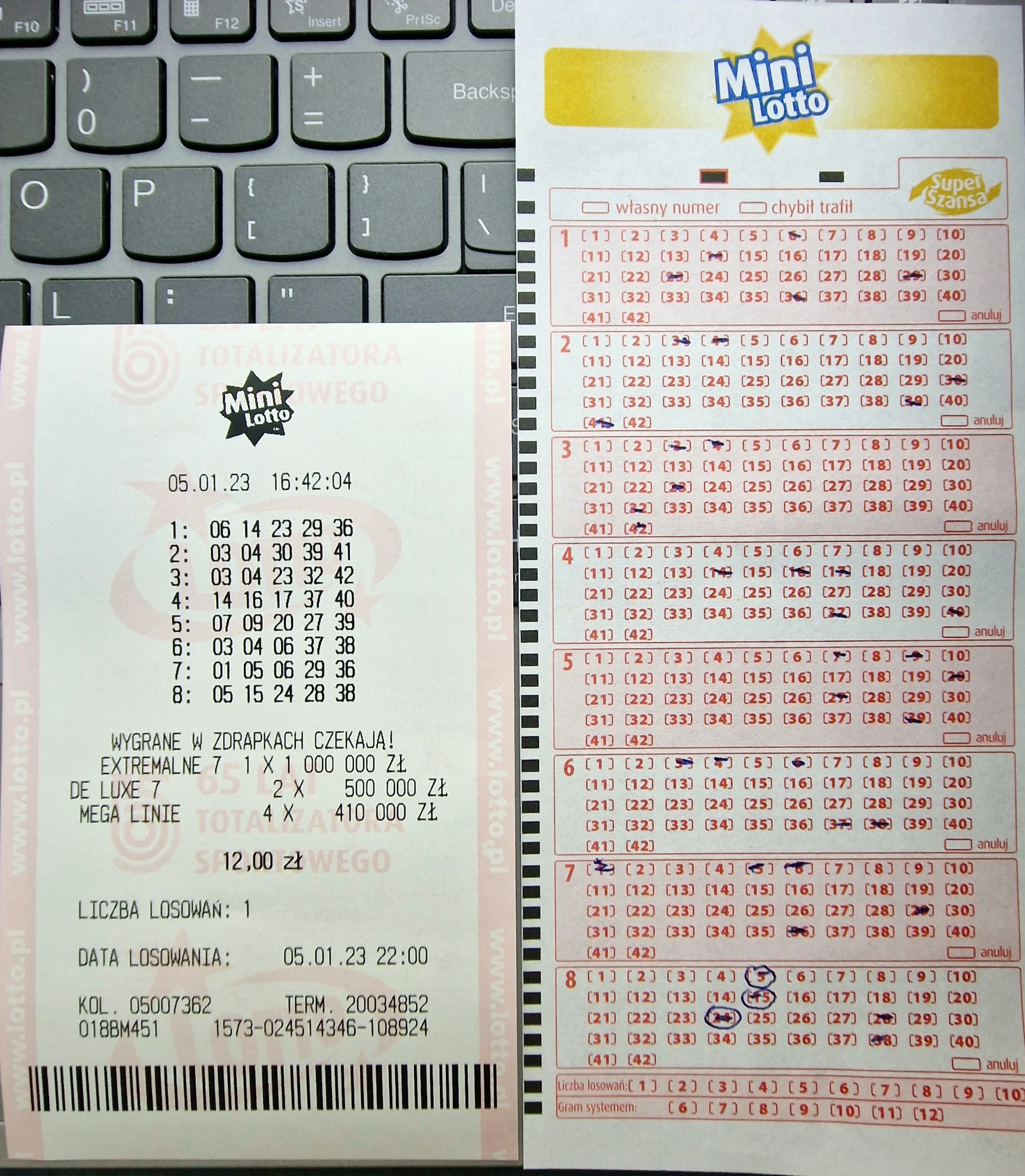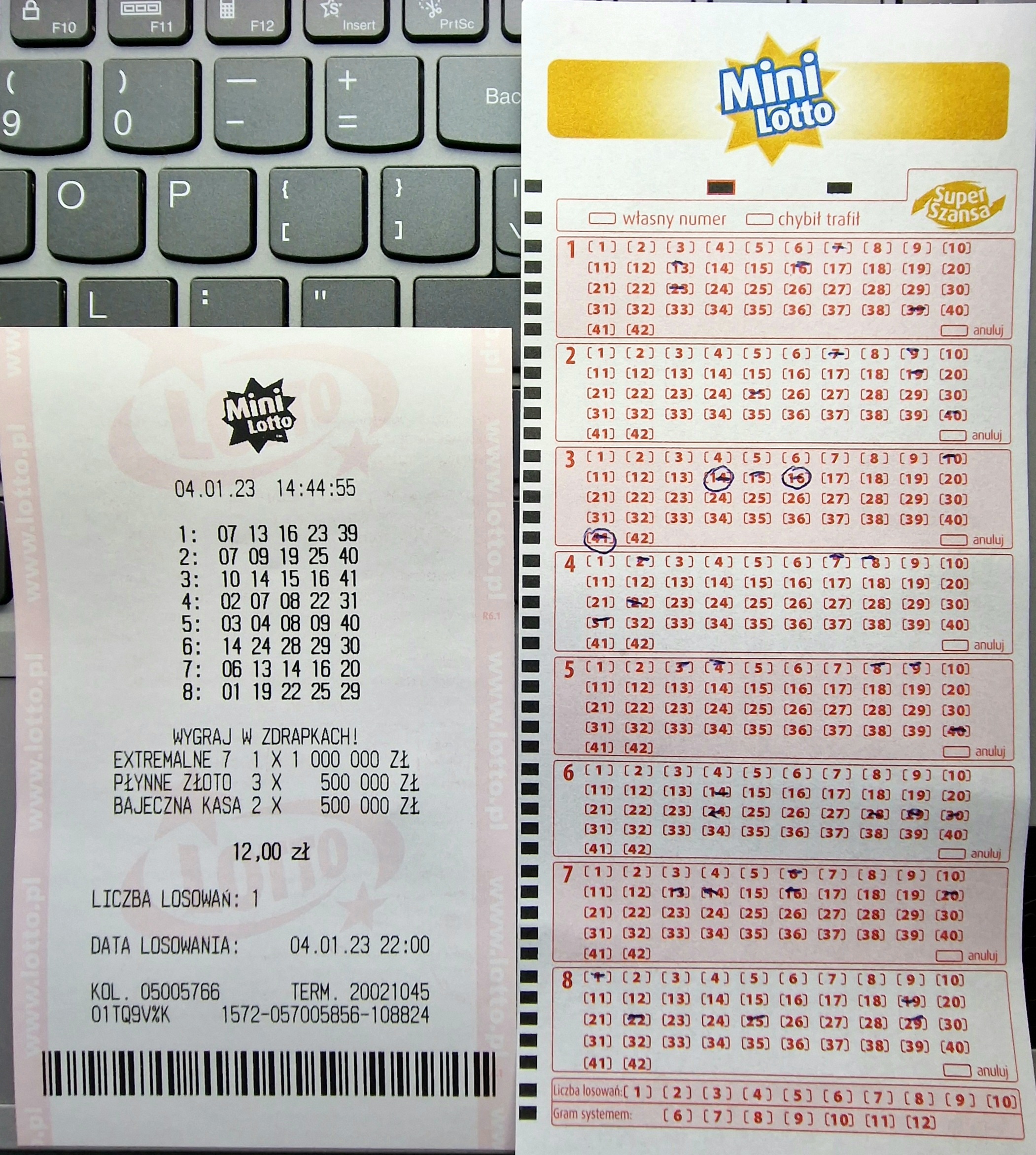 1 liczbę trafiłem przy systemowym na 7 liczb
