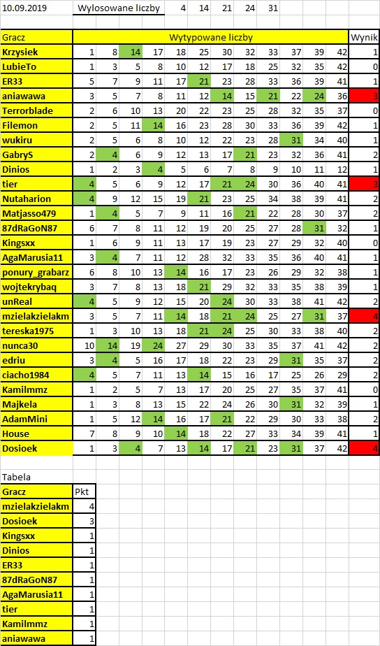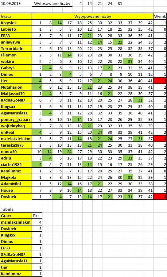 Aniu - przepraszam za pomyłkę. Poprawione wyniki z 3 losowania (10.09.2019)
