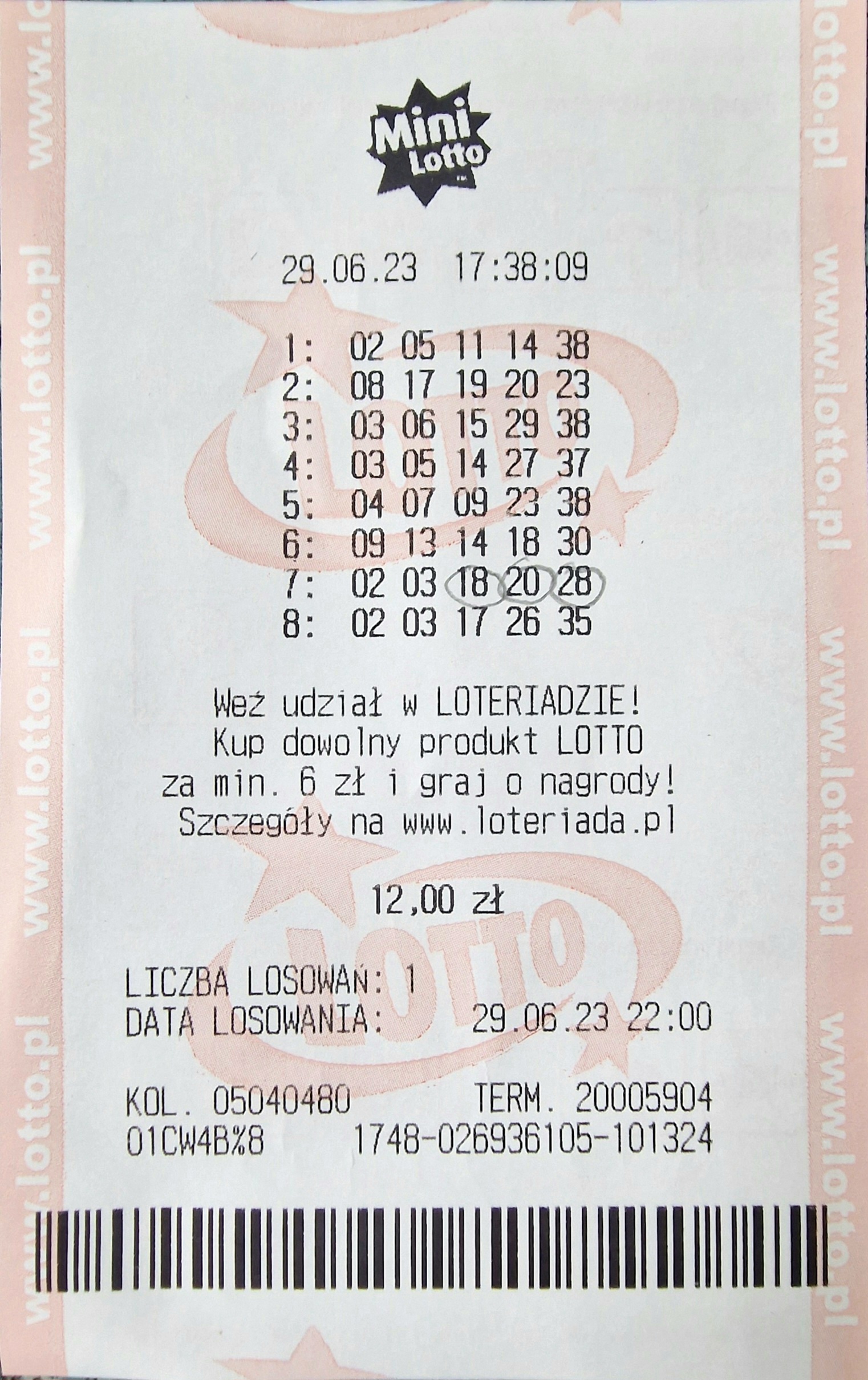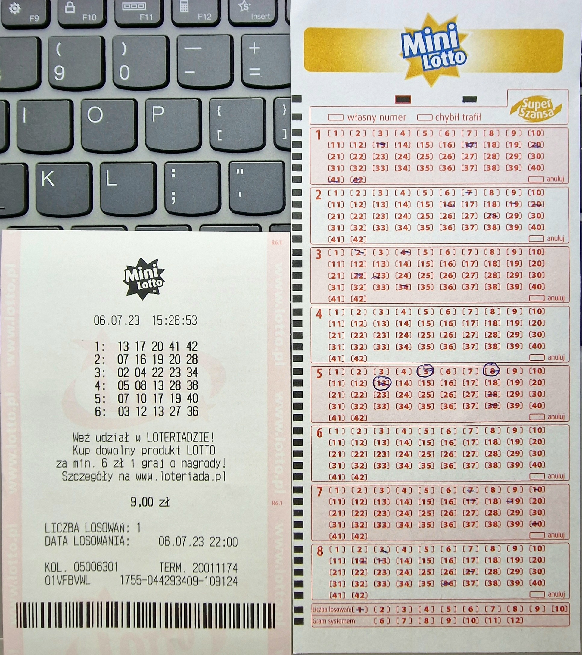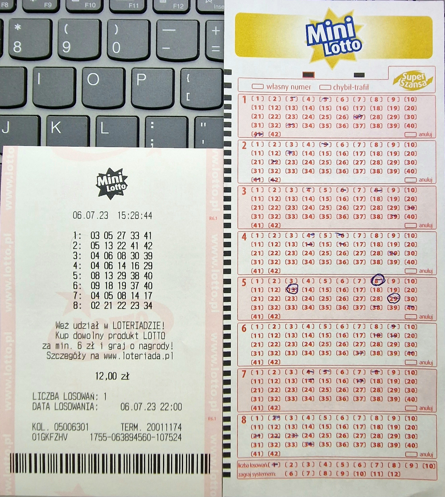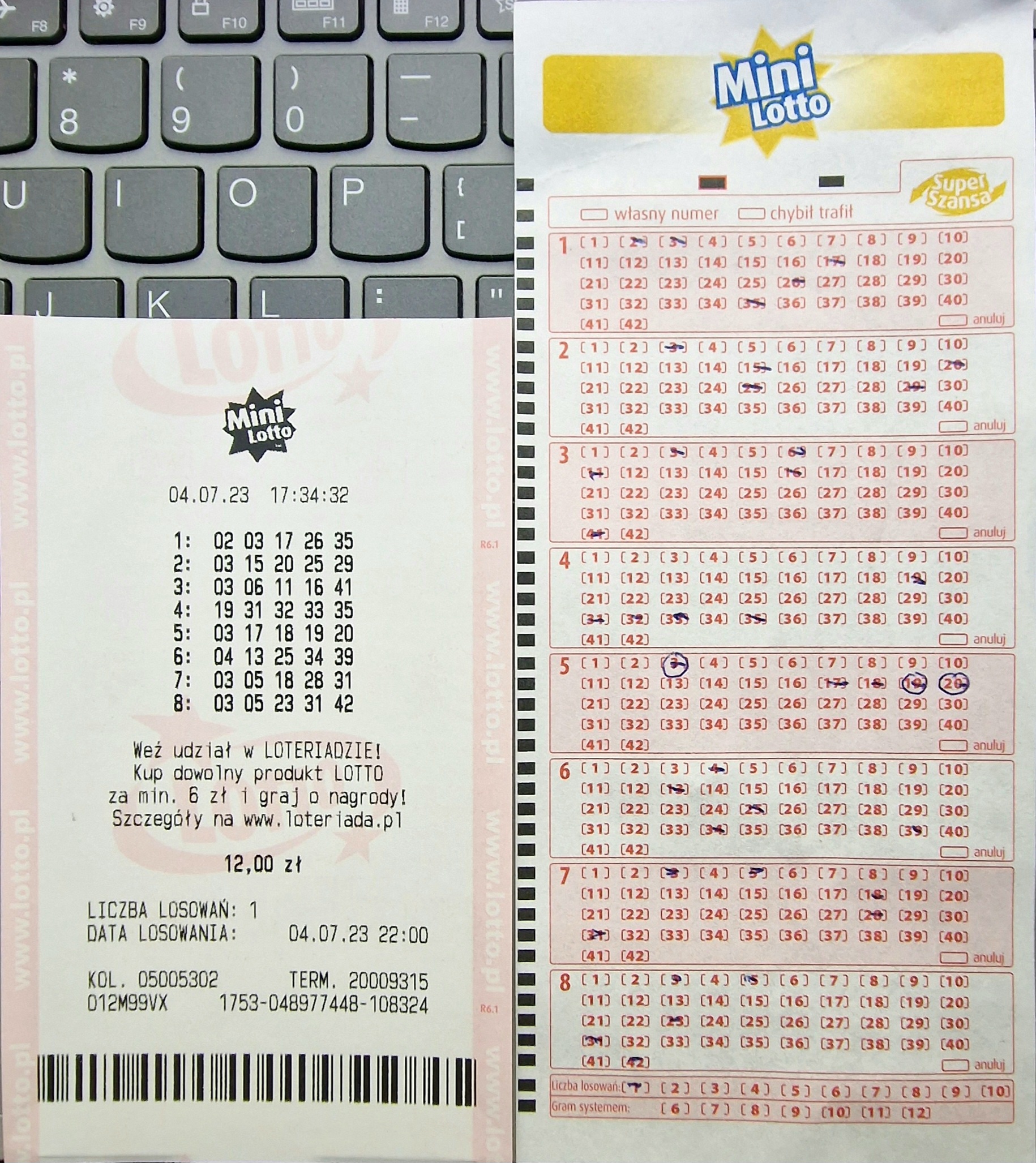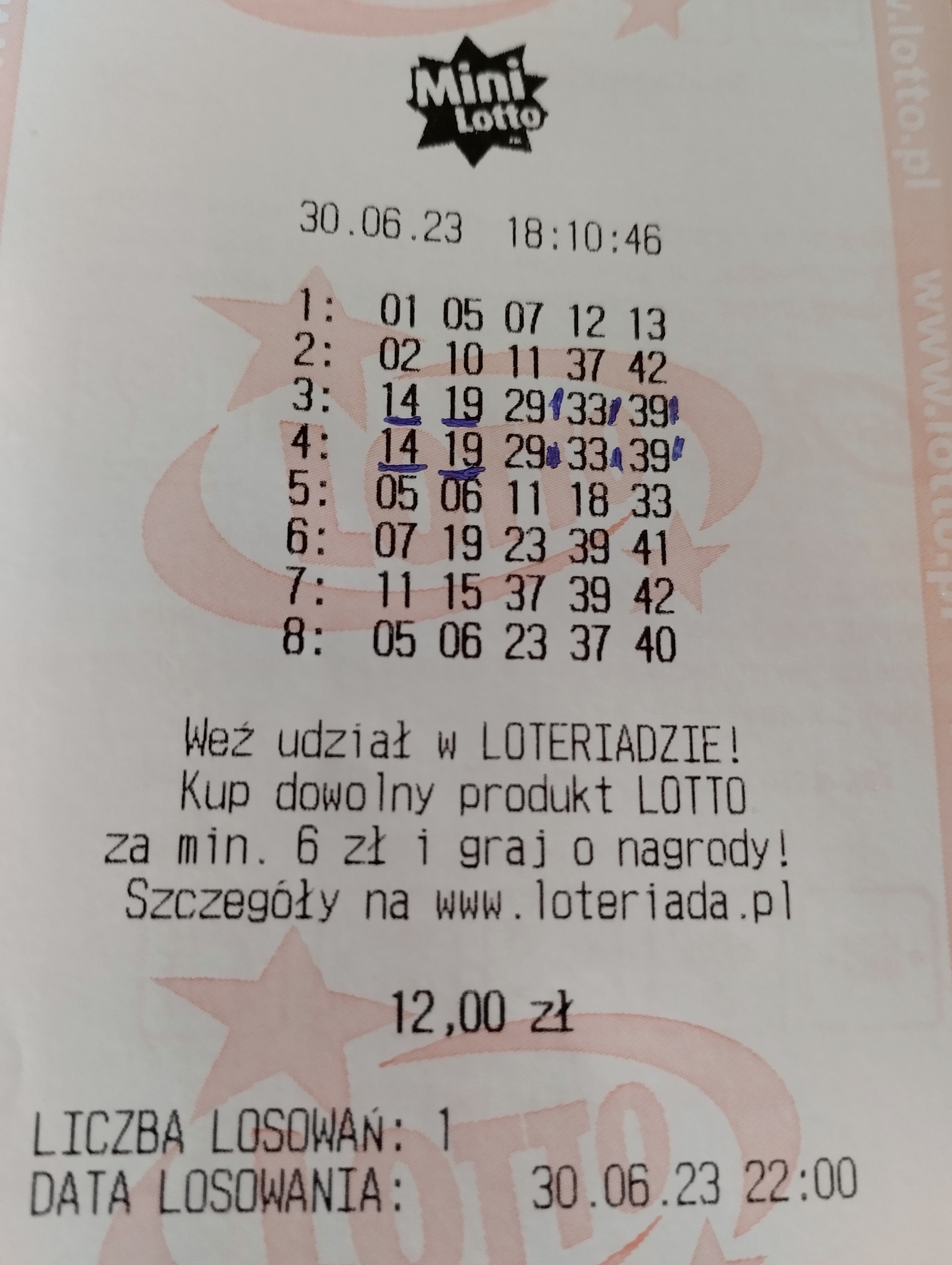 Witam kupon wysłany na chybił trafił i takie liczby z tego dwie pierwsze weszły ciekawe ).