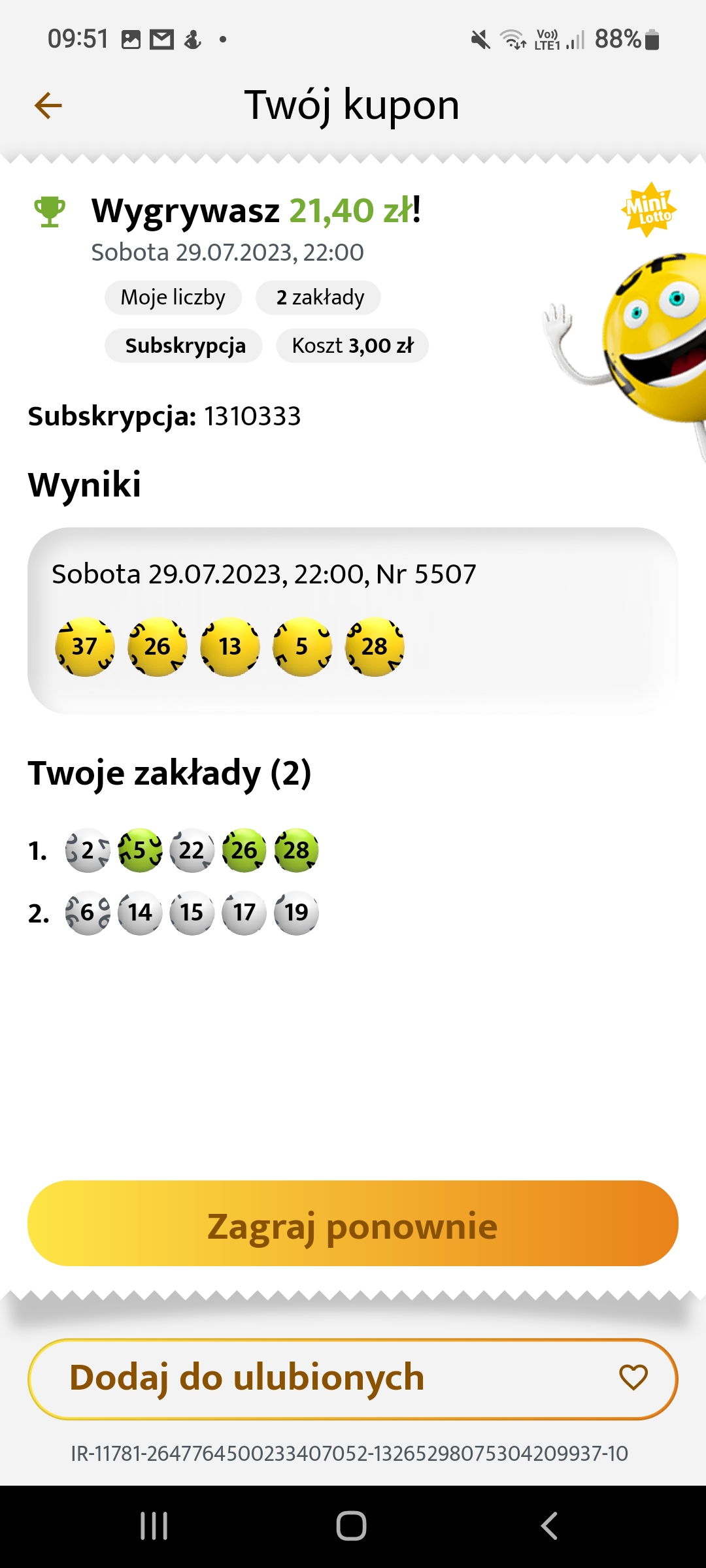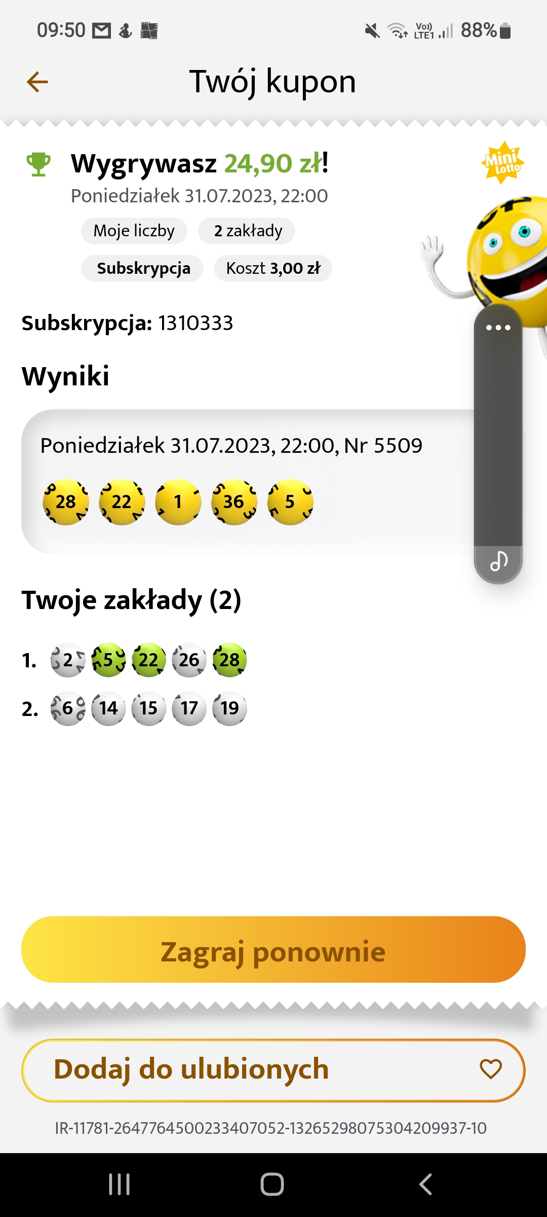 Znów blisko czwórki w pierwszym zakładzie skreśliłem 1.