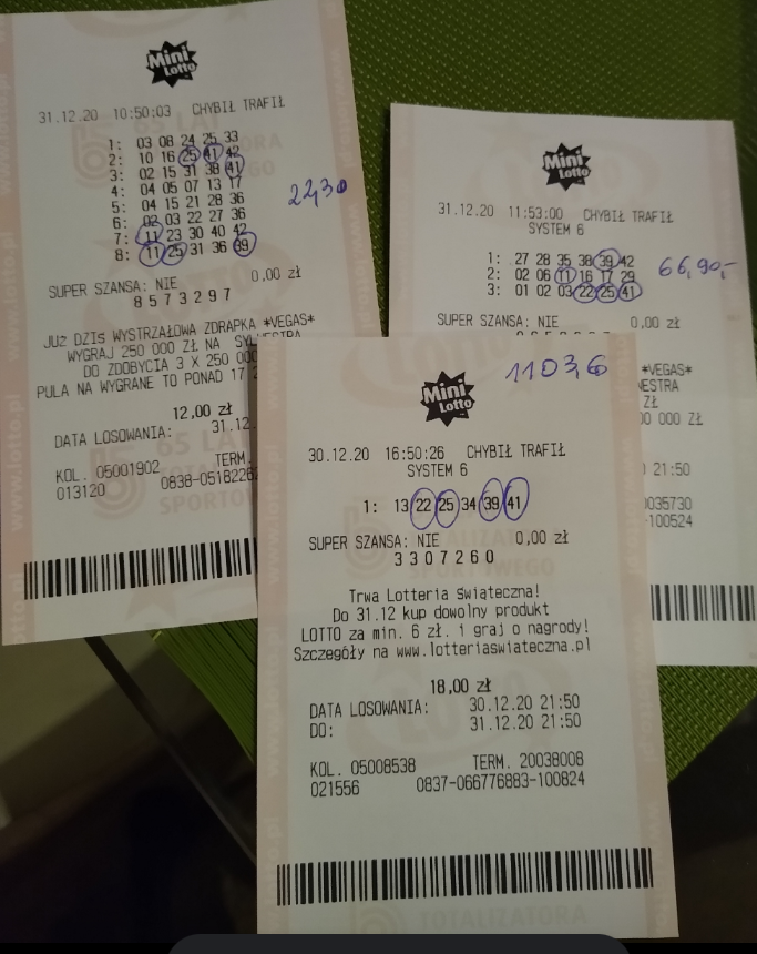 Teraz dopiero załapałem, że to kupon kupiony wczoraj na dwa losowania...