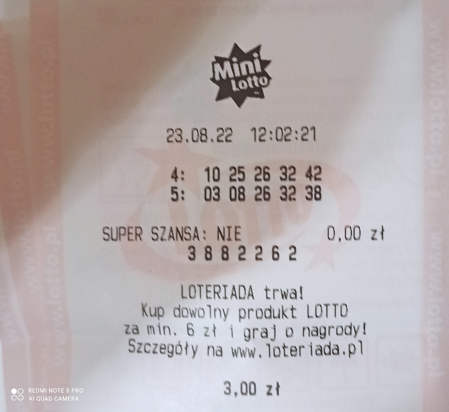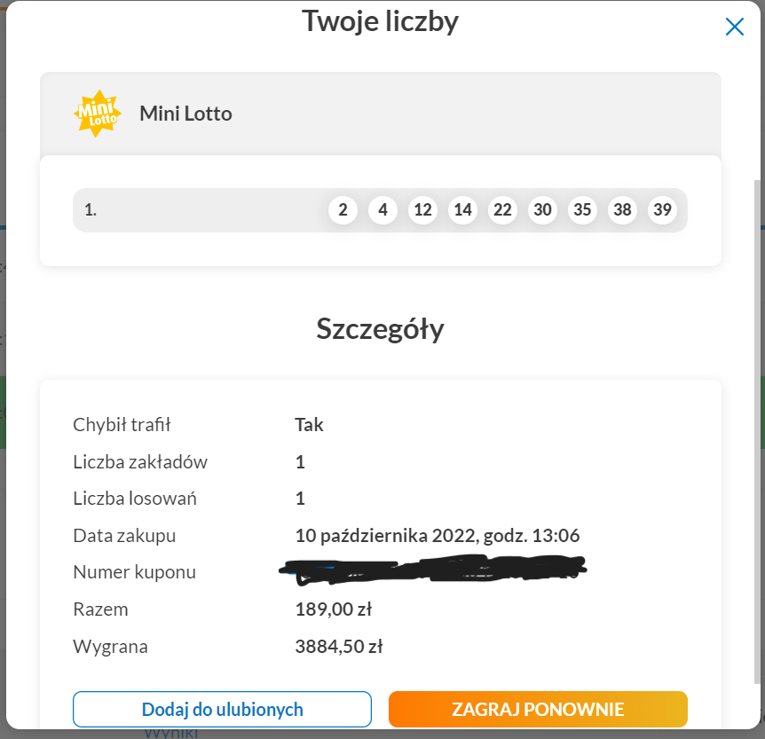 Wylosowane liczby to 10,26,32,38,42 więc było mega blisko 5/5