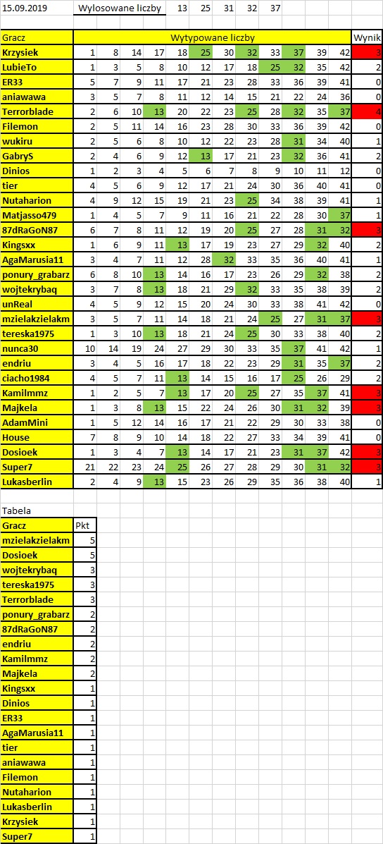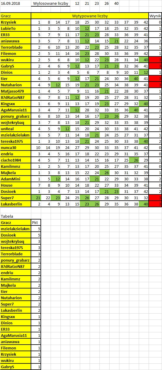 A może tabelka z cyframi od 1 do 42 a na niej zaznaczone wszystkie nasze typy ? Bedzie wiadomo których nie obstawiliśmy ?