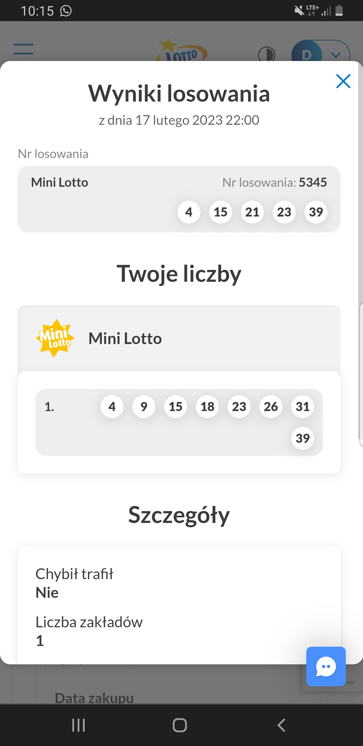 Witam. Niestety nie tym razem.. a jak skreślałem to zastanawiałem się nad nr 21 xd...
