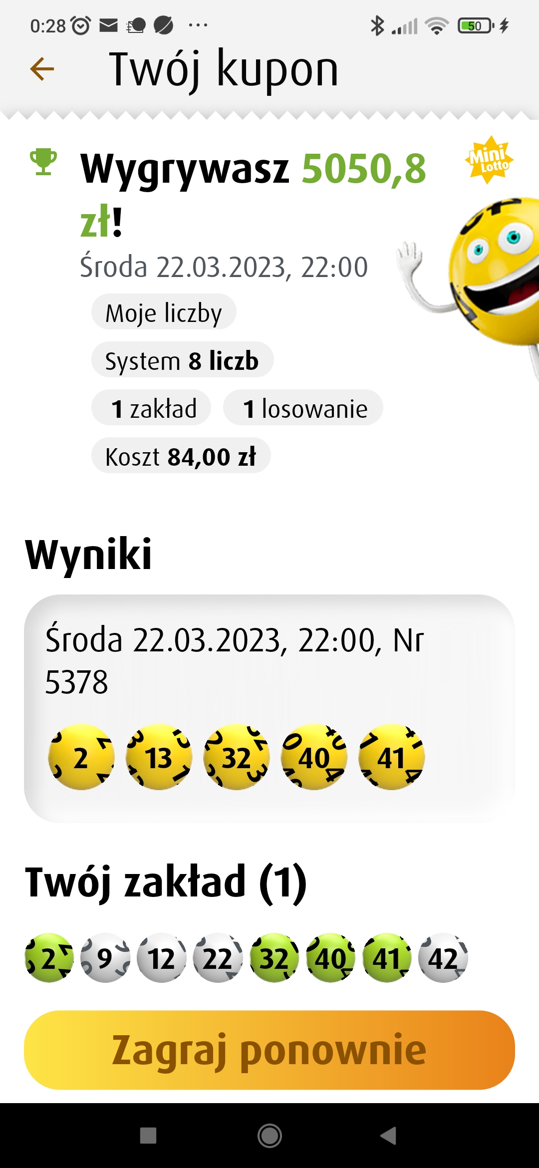 Gratulacje! Teraz jeszcze niech tylko się spełni 5/5 i będzie można startować po 6/6 w Lotto![]()