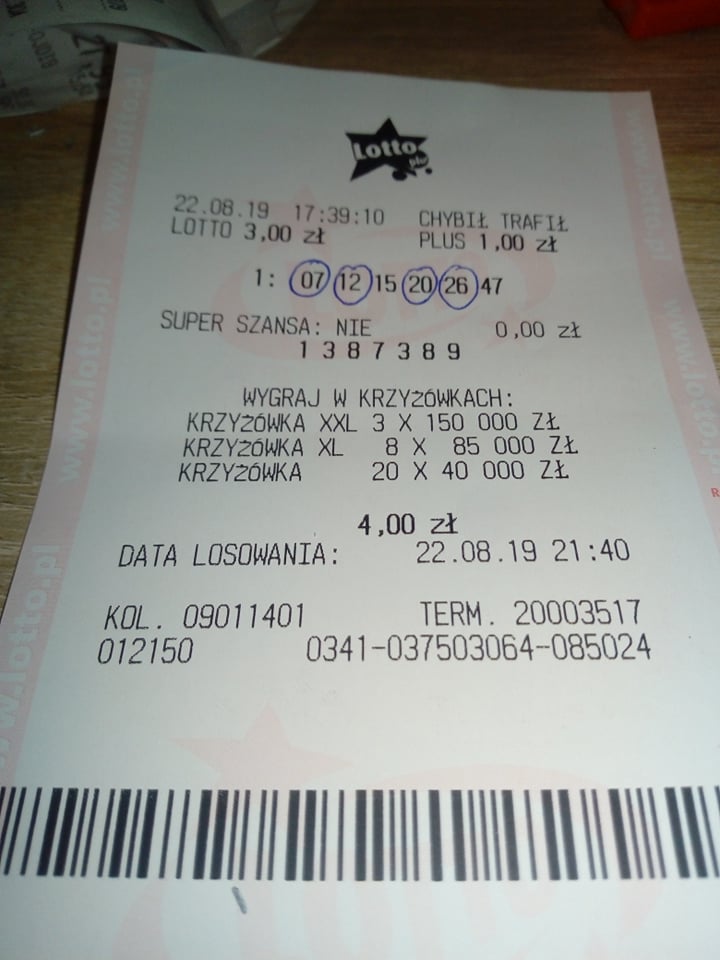 Chyba 4AgaMarusia11 pisze: ↑04 wrz 2019, 12:49Przy tych wczorajszych dziwnych numerach udało się trafić 5 na CT![]()