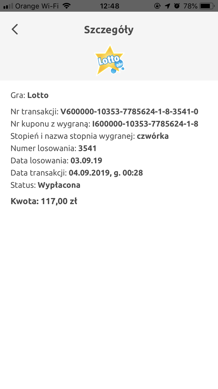 Wczoraj wpadło on-line WT 1 x 4/6 i 4 x 3/6 w sumie wygrana 350 zł. Gdybym zamiast 48 dał wylosowane 49 byłoby trafione 5/6.