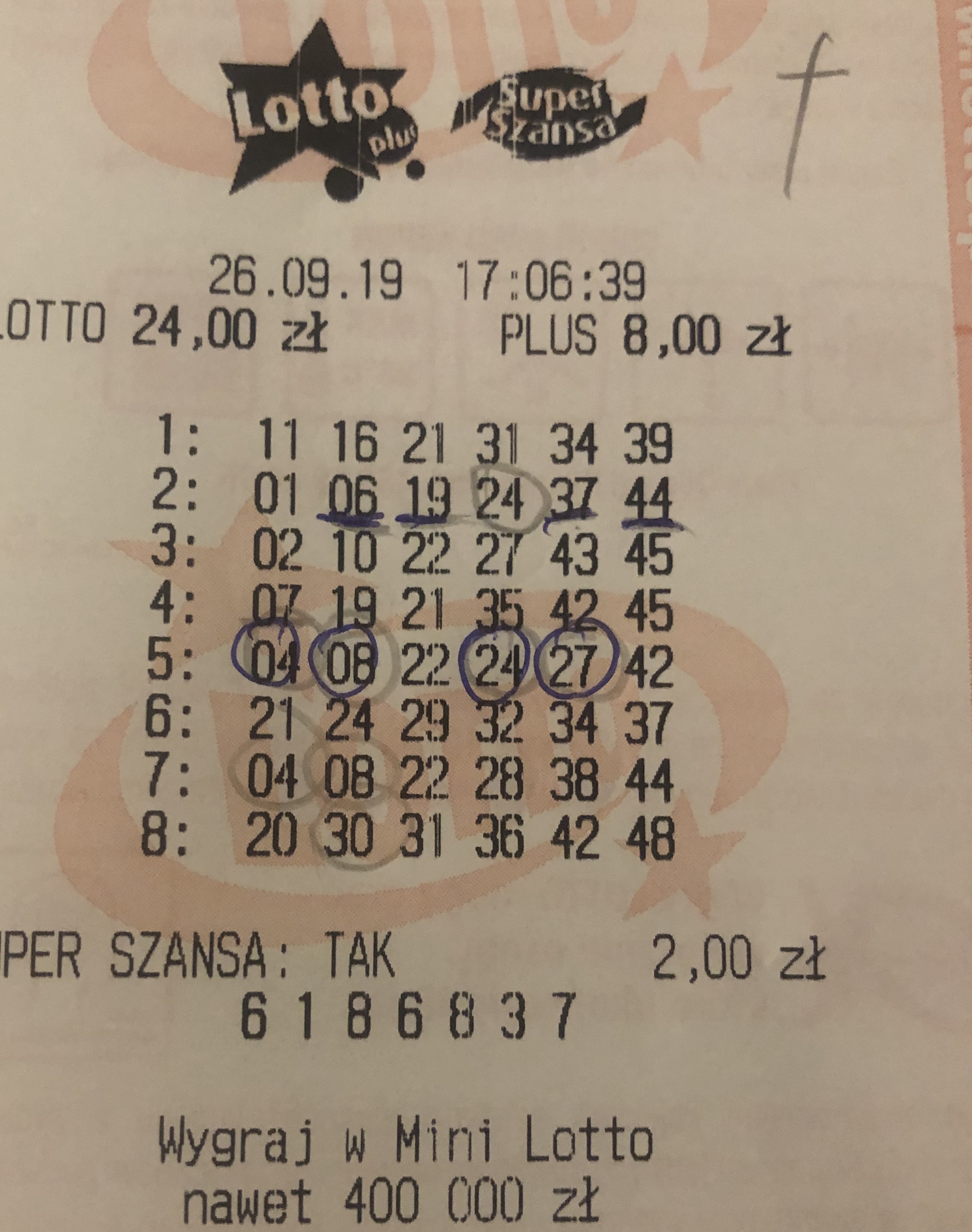 Gratulacje wielkieAgaMarusia11 pisze: ↑27 wrz 2019, 0:44Udało się dzisiaj trafić 4/6 w Lotto i 4/6 w Plusie. Szkoda, że tak słabo płatna![]()