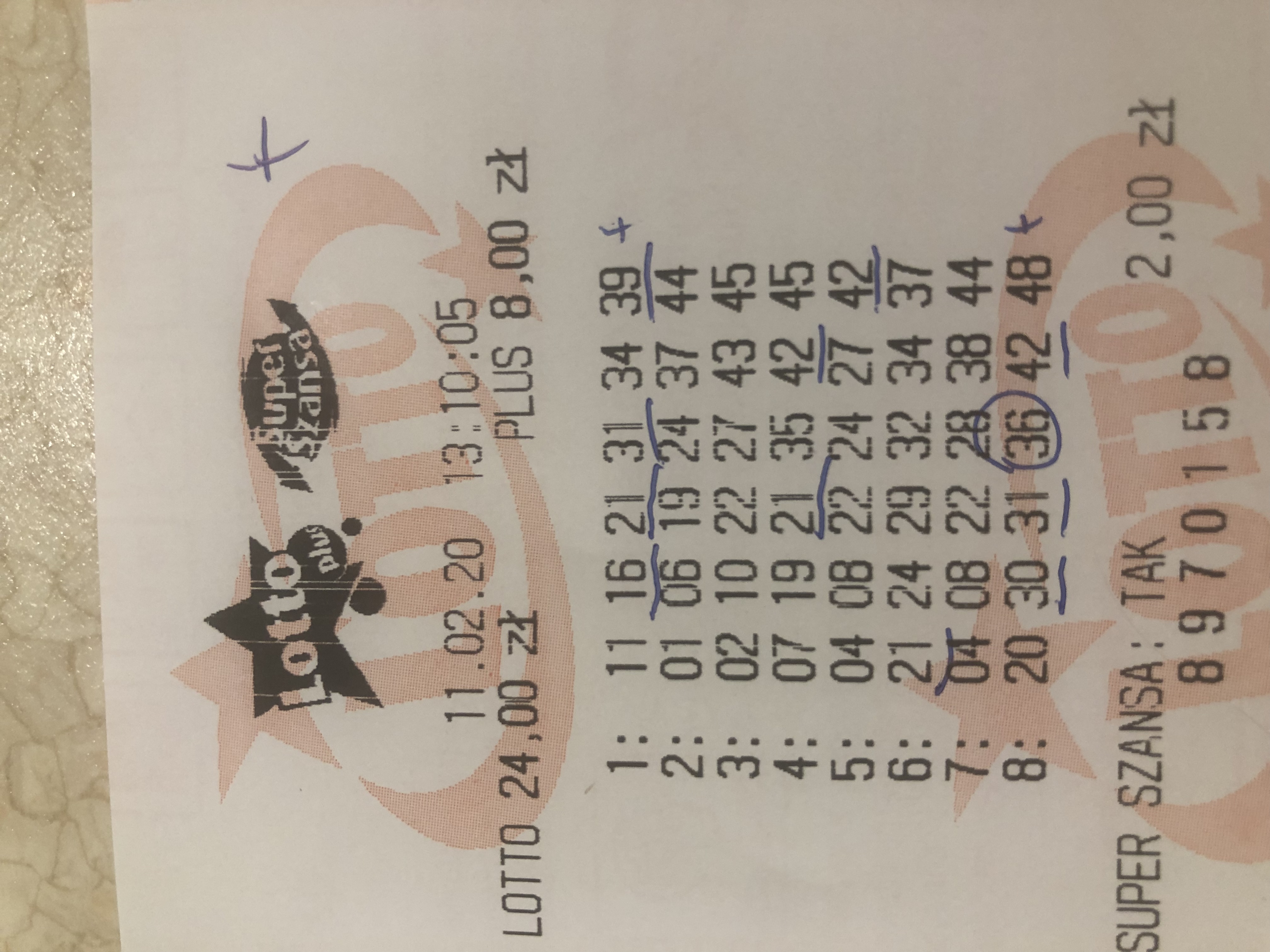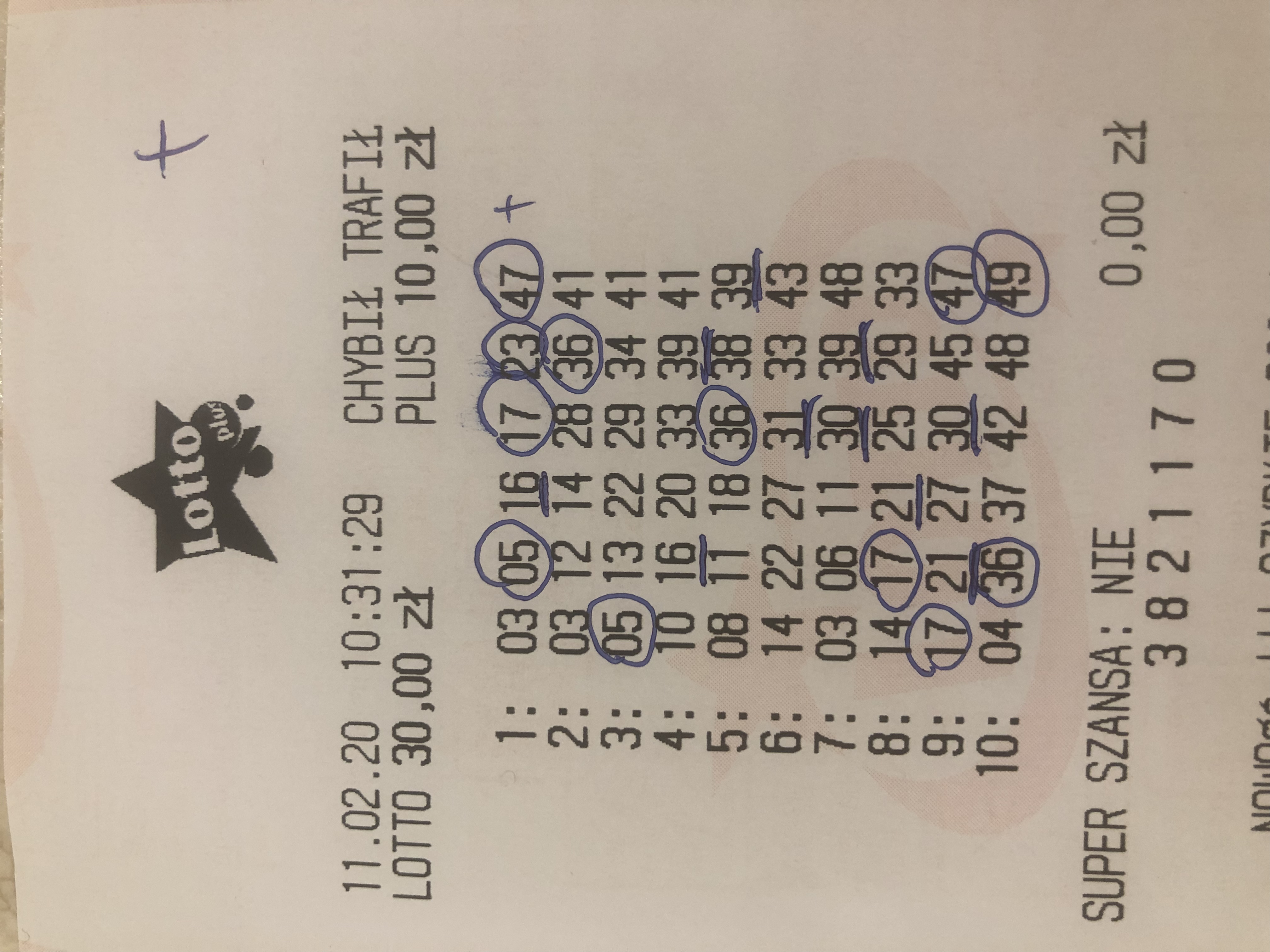 Wczoraj znowu wpadło 1 x 4/6 ( z obokiem do 5/6) i 4 x 3/6 ale tym razem w Lotto Plus wszystko wt online na 10 wysłanych zakładów
