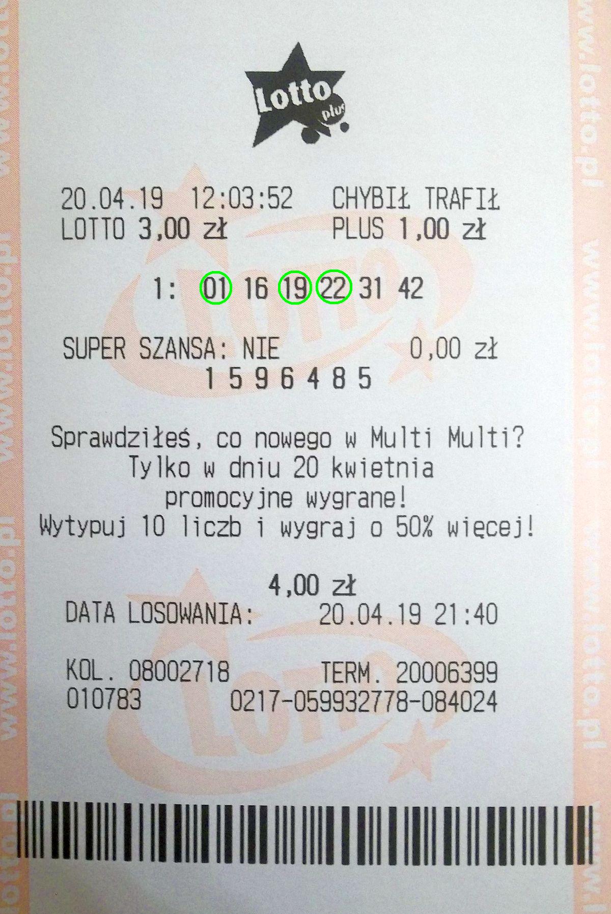 U mnie też "trójeczka" ale w głównym Lotto.