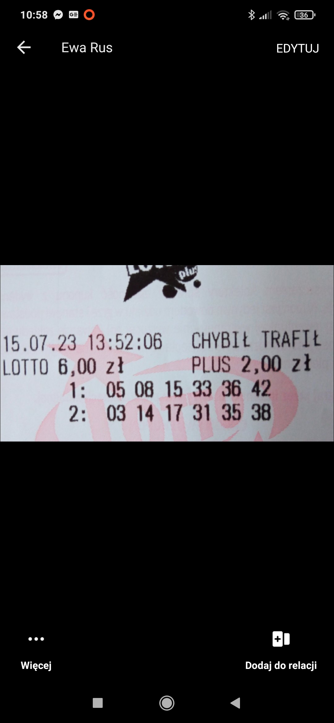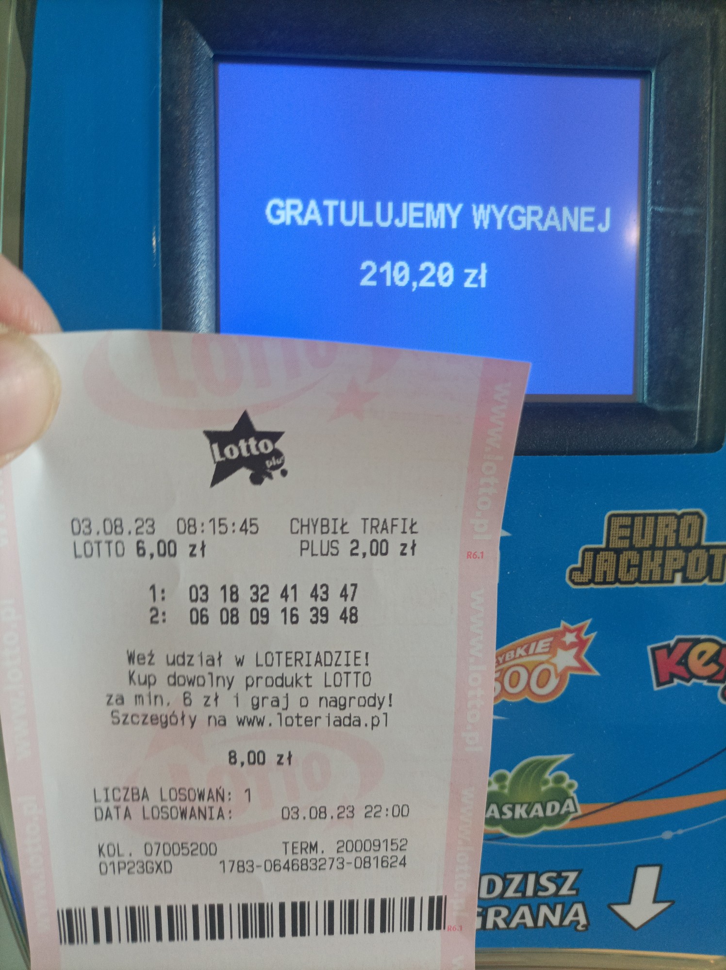 Dzięki! To już któraś moja wygrana 4/6 w Lotto plus. Tylko (albo aż) raz wpadła piątka, ciągle liczę, że szczęście dopisze, i wleci szóstka