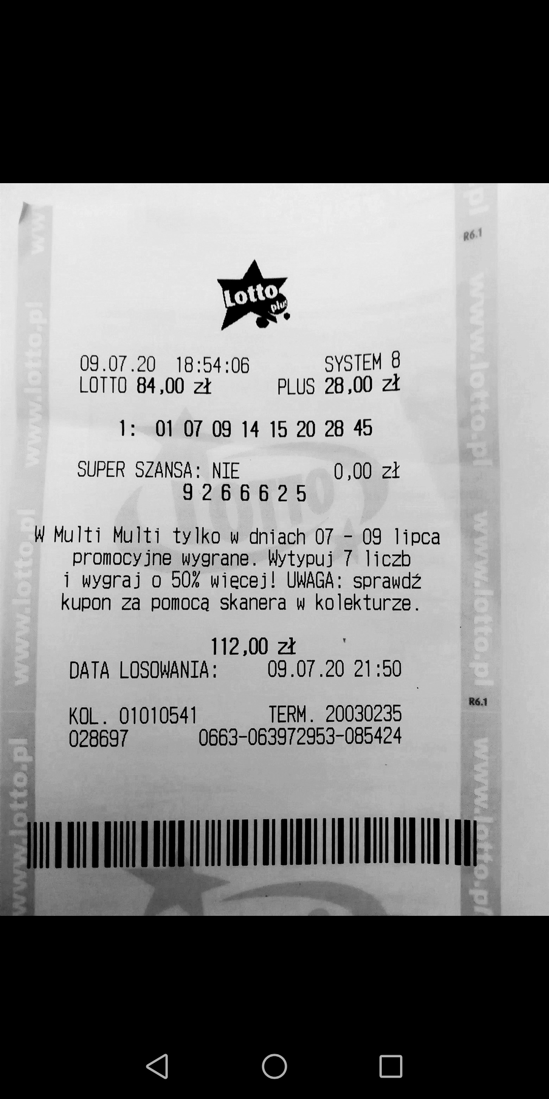 Dzisiaj wygrałam ten darmowy talon na lotto z loteriady a wysłałam 1 zakład lotto na 2 losowania za 8 zł i patrze że jest kupon długi a tam nagroda.