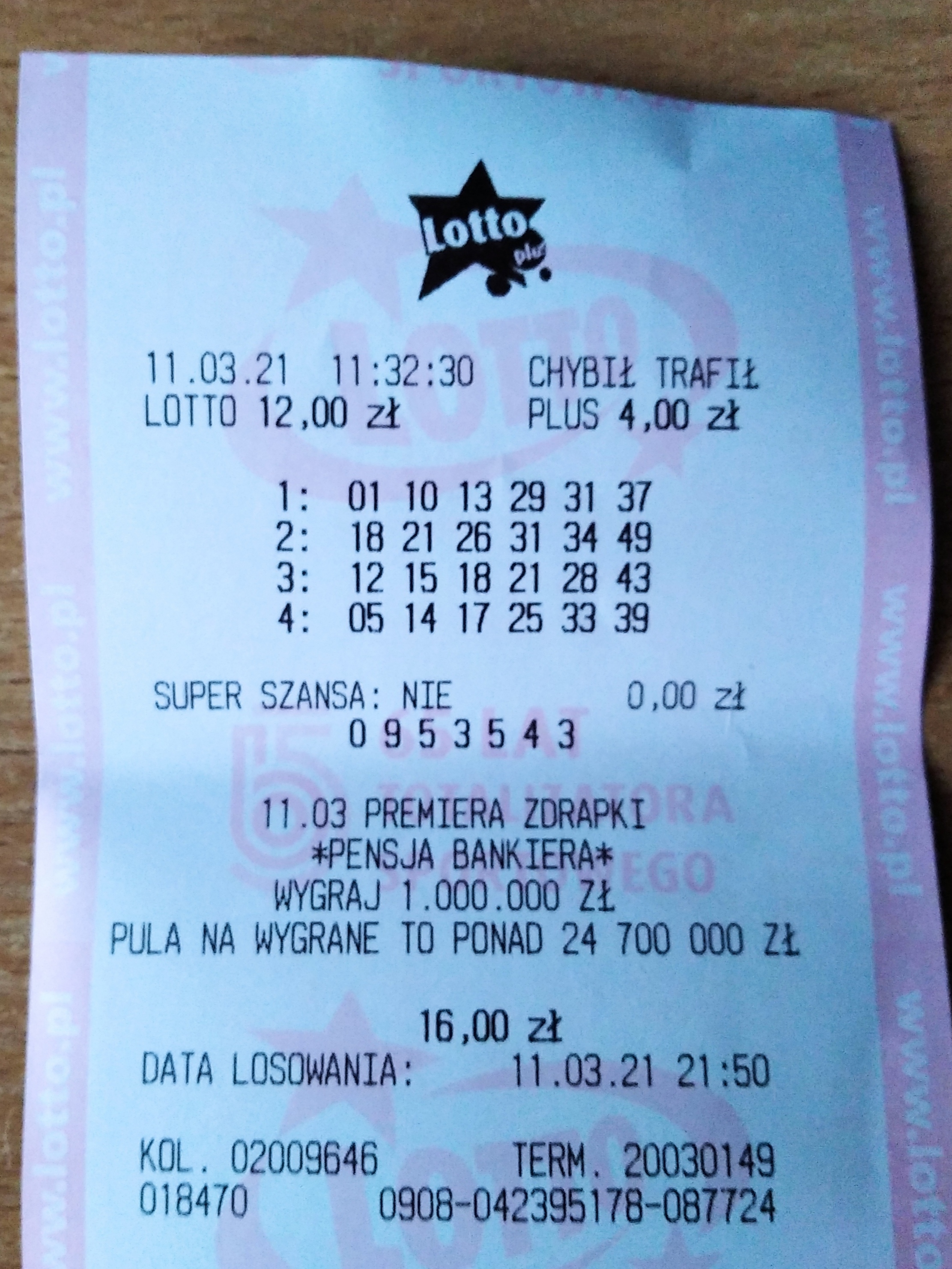 Miałem 3 stałe zakłady Grałem nimi od nowego roku . Ostatnio 3 losowania temu .