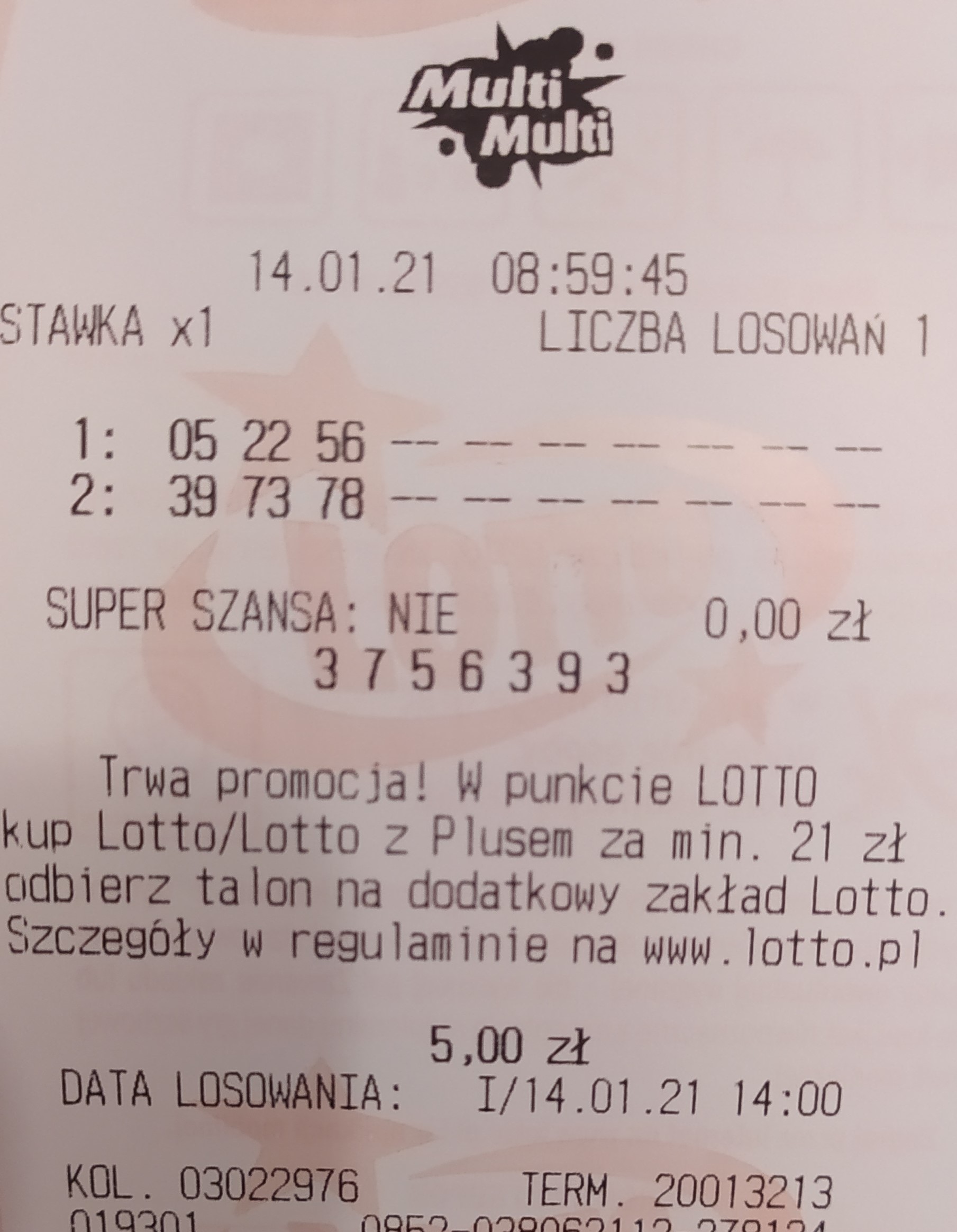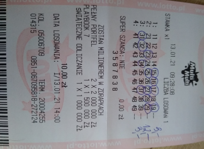 Ja też sobie zagrałem 1 zakładem na 4 losowania ale 30 tki :)
