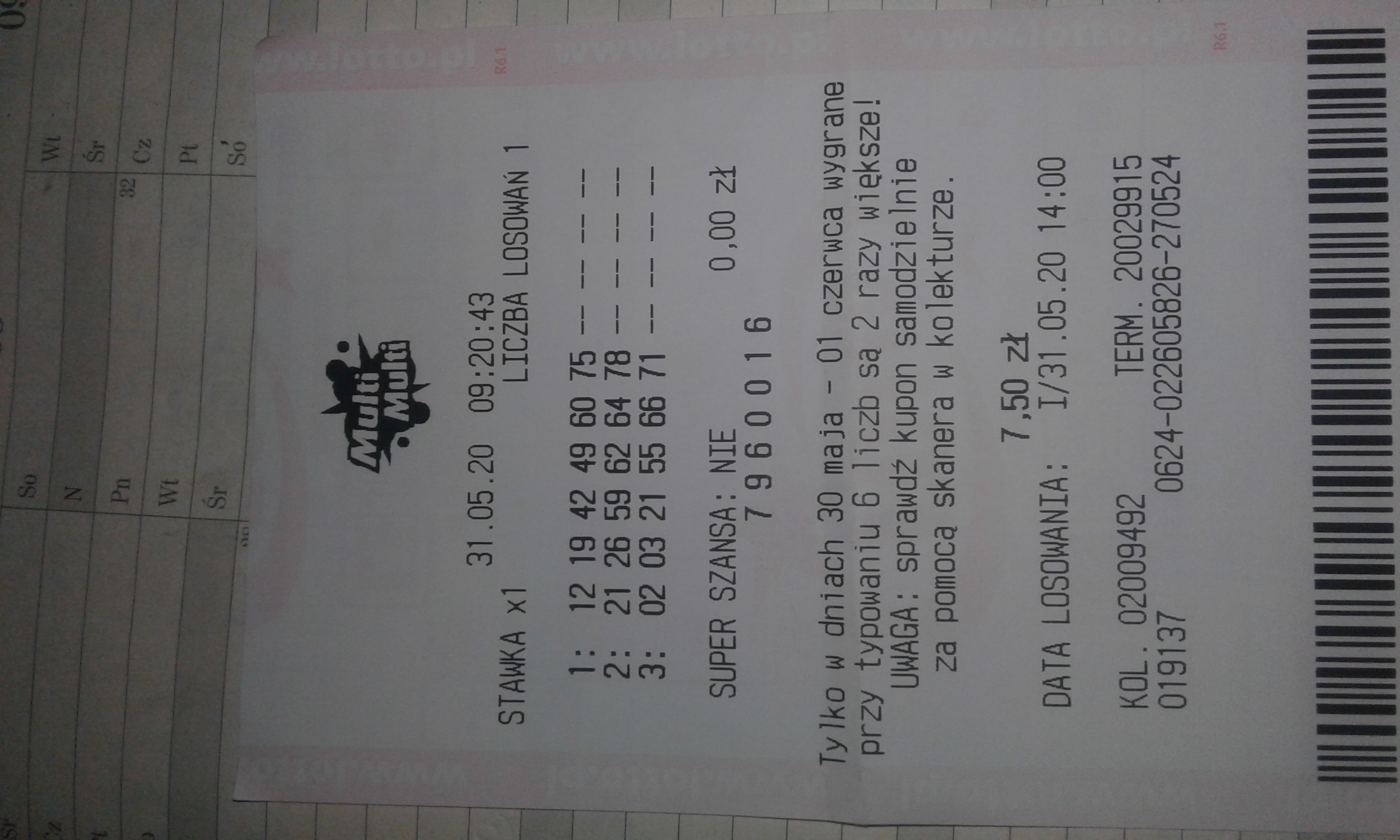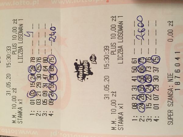 Dzięki za graty. Wczoraj wieczorem 4/6 dziś na 14 5/6 dziś wieczorem wrzucam 6/6mzielakzielakm pisze: ↑31 maja 2020, 14:54Szkoda tej ostatniej liczby ale i tak graty, no trafić 5/6 to i tak sukces
