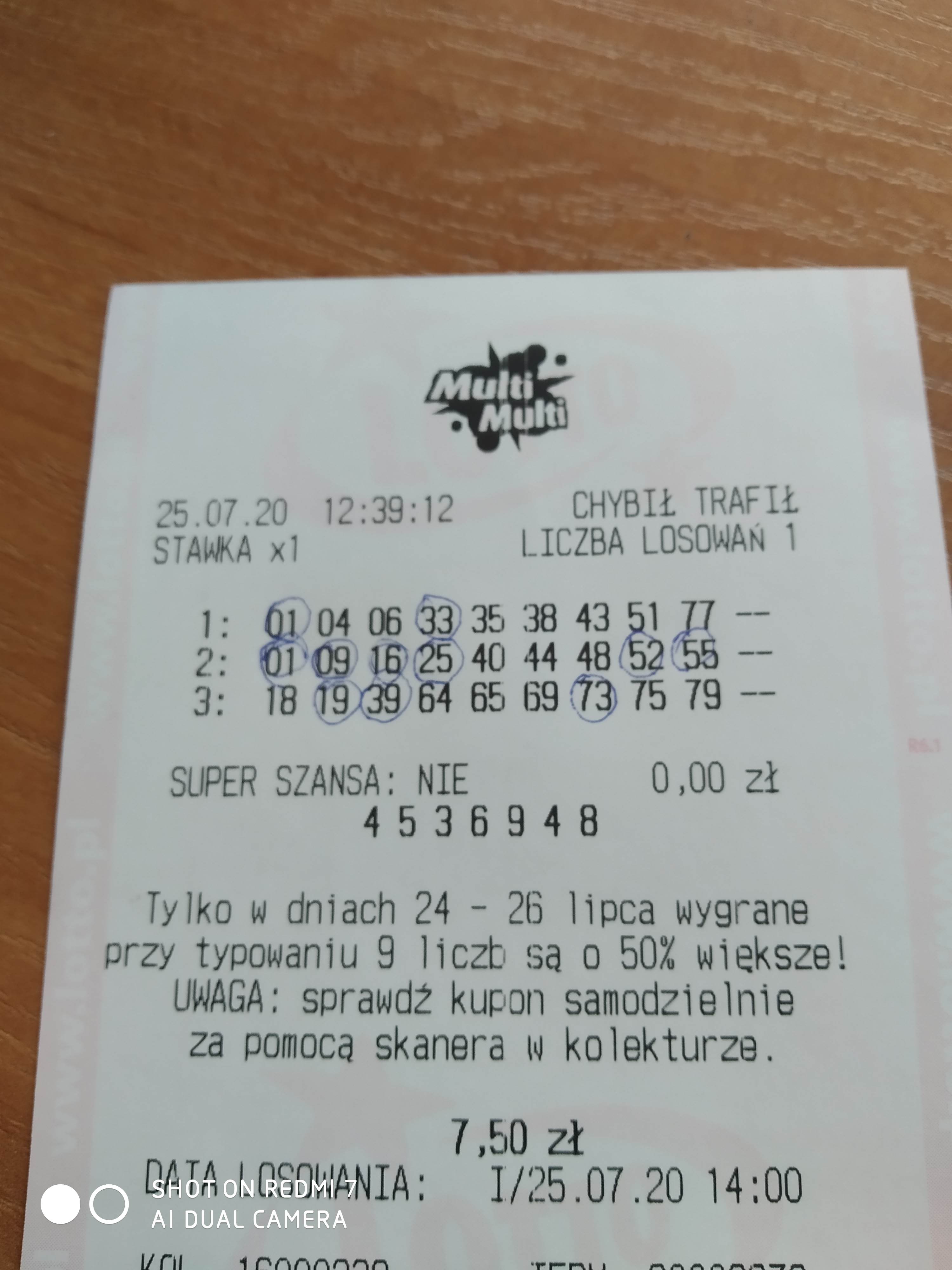 Ja też zaryzykowałem i zagrałem 3 zakłady z plusem na 4 losowania,2 wt i cht...3majcie kciuki