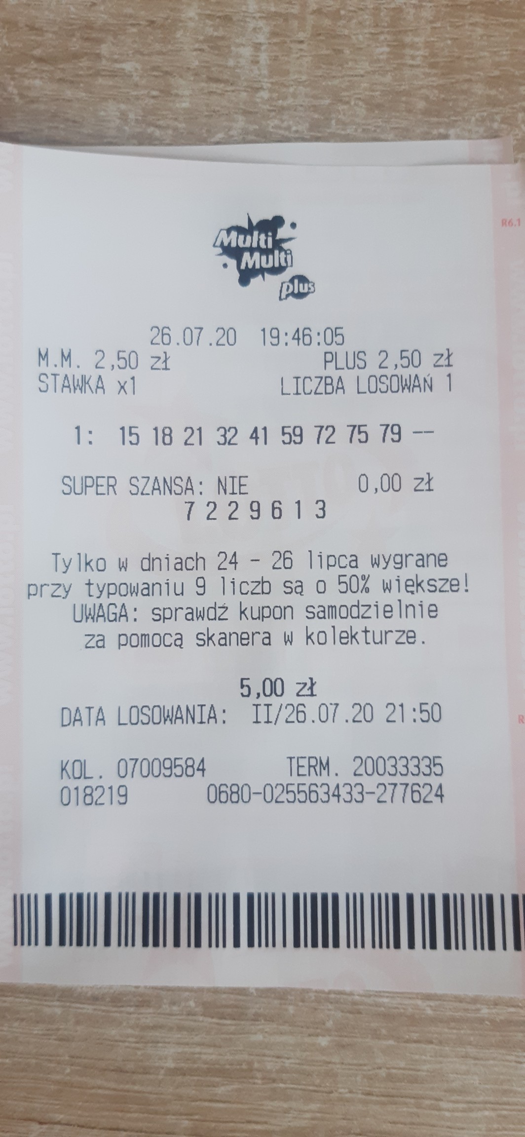 Wczoraj wieczorem wygrałam 5/6 jeden zakład za 2,50 miałam. Zapomniałam zrobić zdjęcie kuponu więc jest potwierdzenie tylko. Miałam grać codziennie na 8 lub 9 liczb w multi ale małe wygrane miałam ostatnio więc wróciłam z powrotem do 6 liczb bo na mniej liczb jednak łatwiej trafić coś większego i jak widać dobra decyzja. Za wygraną wysłałam 1 zakład euro jackpot mam za darmo.