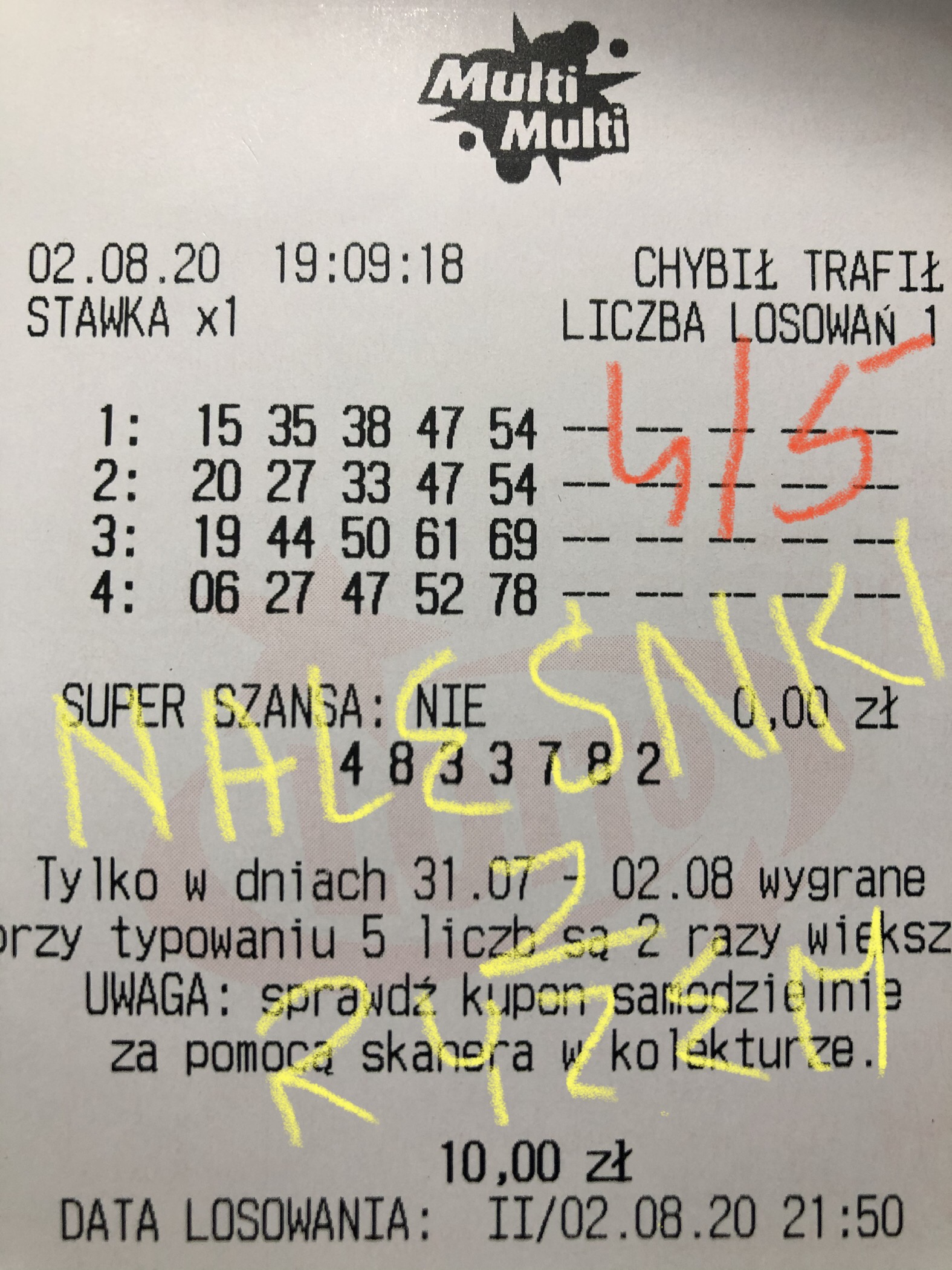 U mnie wczoraj z wieczora 1/5 z plusem czyli trafiony tylko plus 28 zyla i to był niestety najlepszy wynik tej promocji.