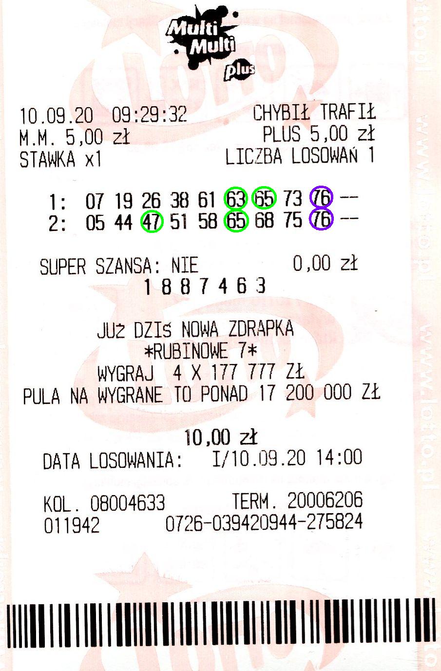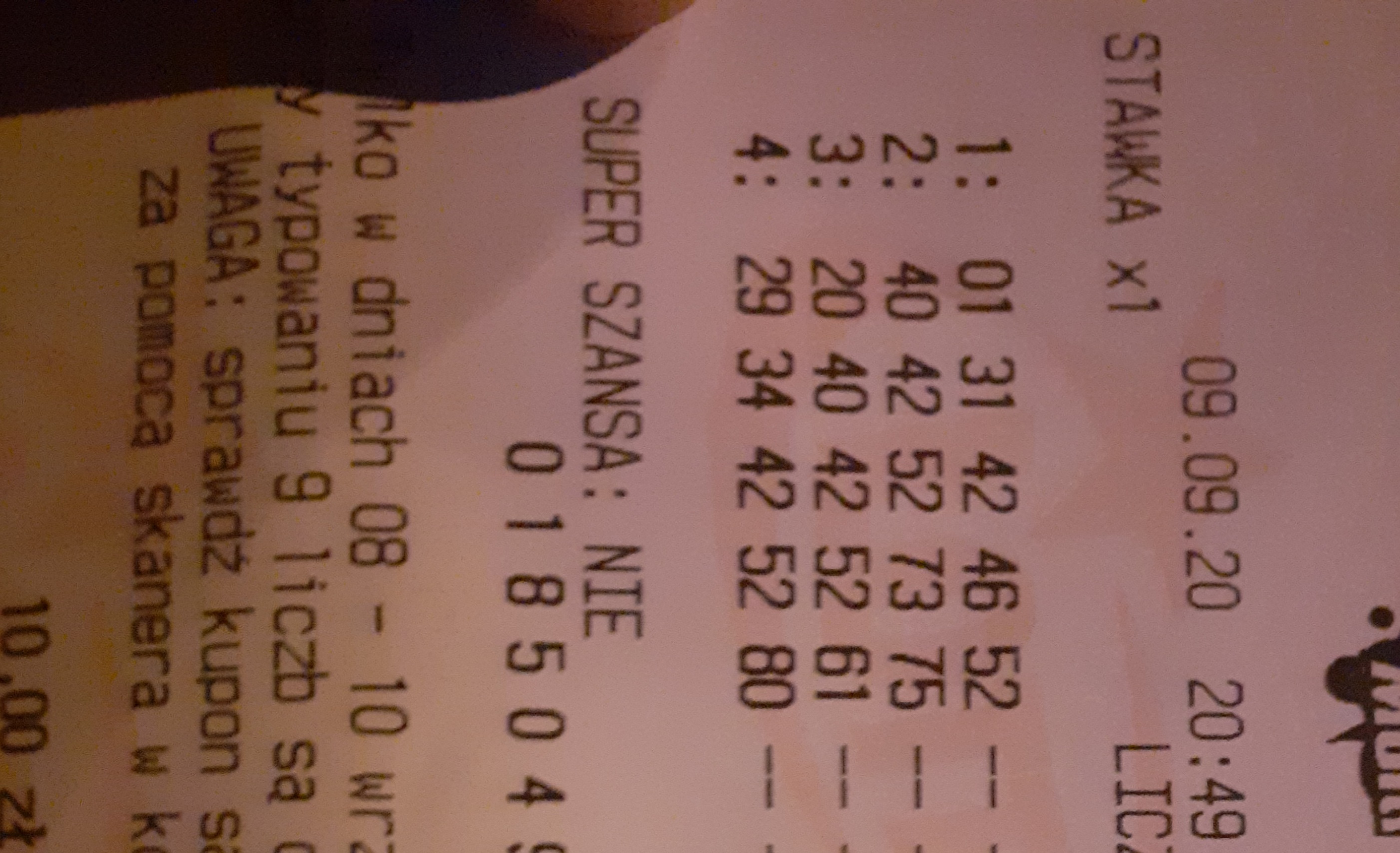 Ogólnie wydane 100zł zwrot 46zł na 10 losowań