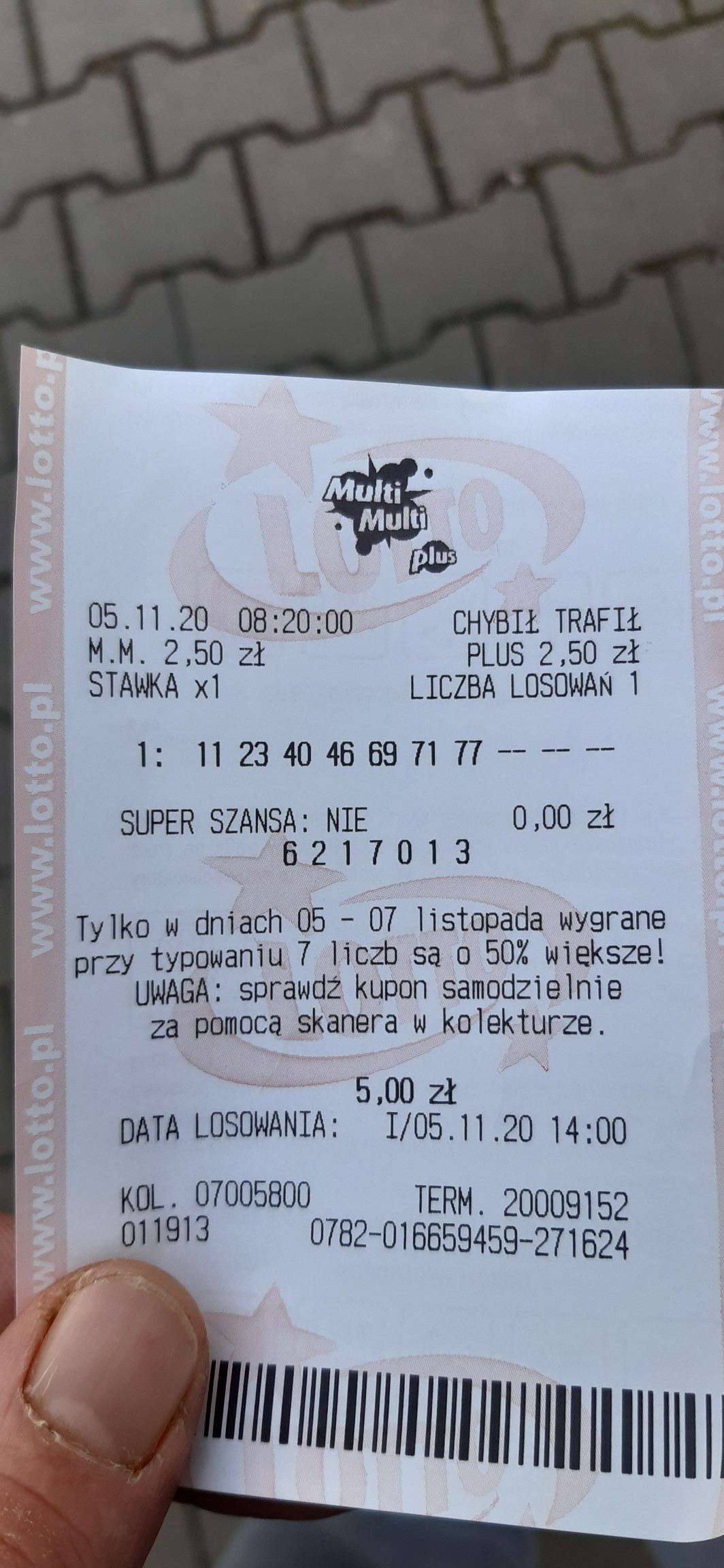Fajnie że Wam coś wchodzi,ja odpuściłem tą promocję,zagram na 6 skreśleń.