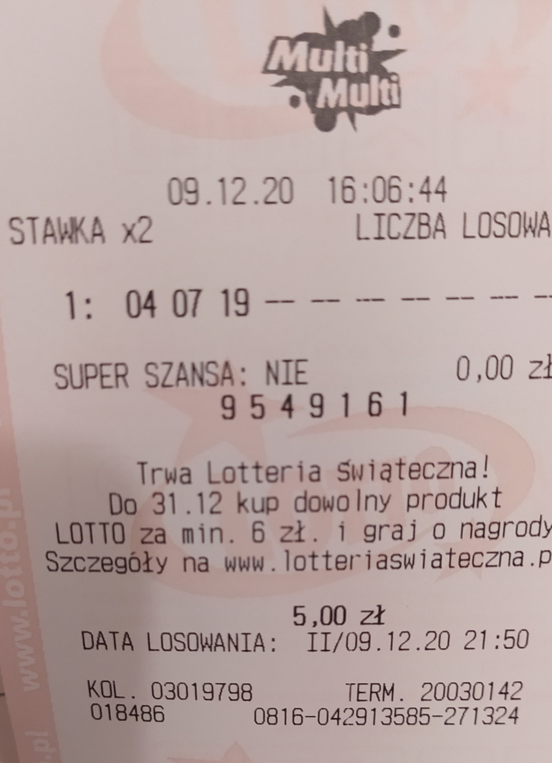 Ja jutro zgram, na dwa zakłady CT na wszystkie losowania.