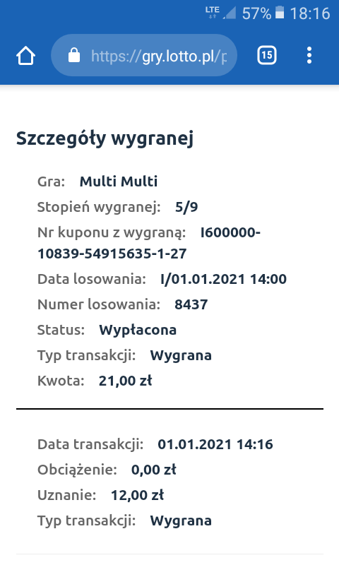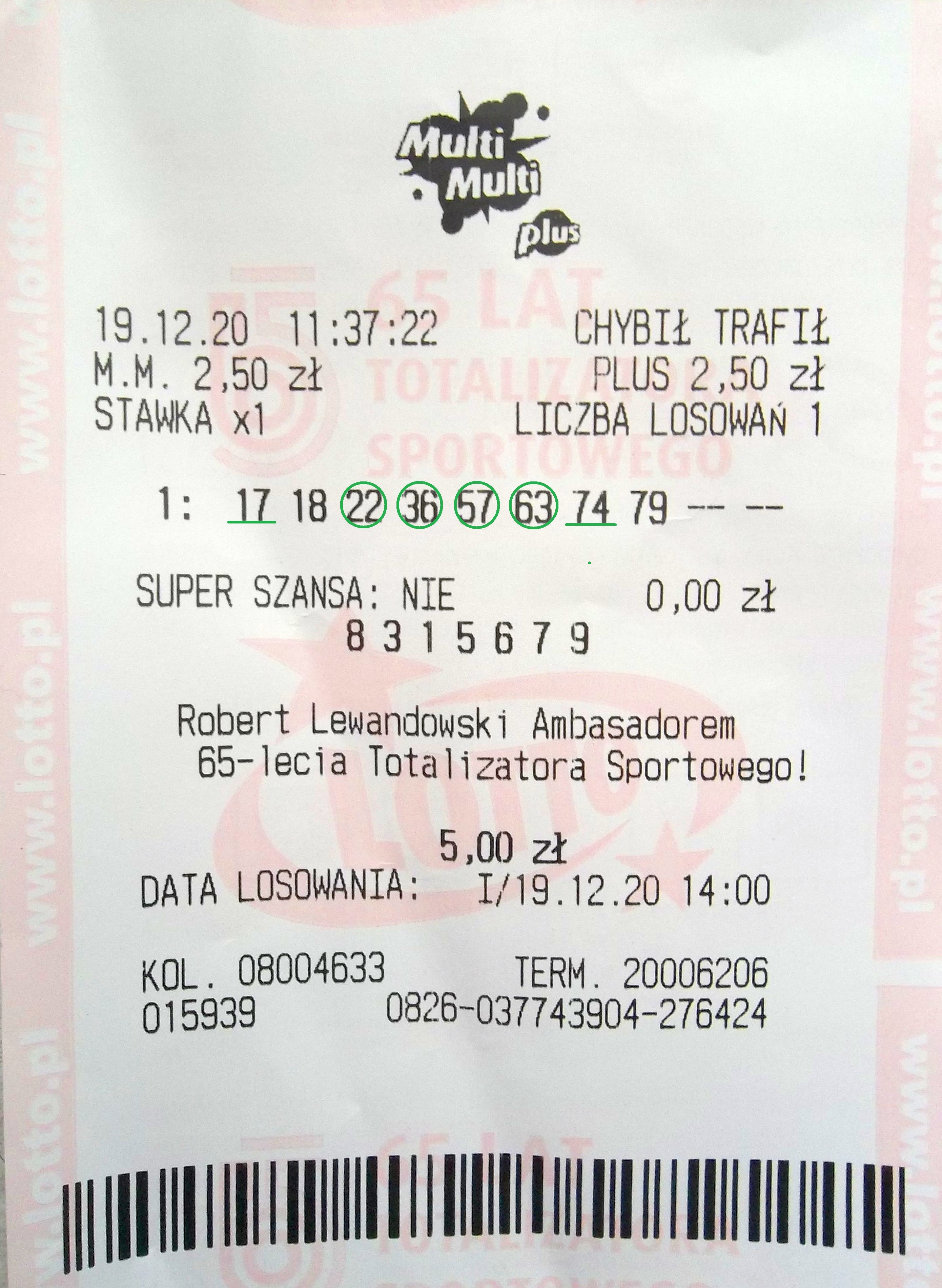 Ja zapodałem przy promocji na o dwa kupony na 6 losowań, jeden zwykly drugi z plusem dzis trafiłem chyba 12 zł na kuponie bez plusa (5/9).